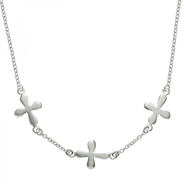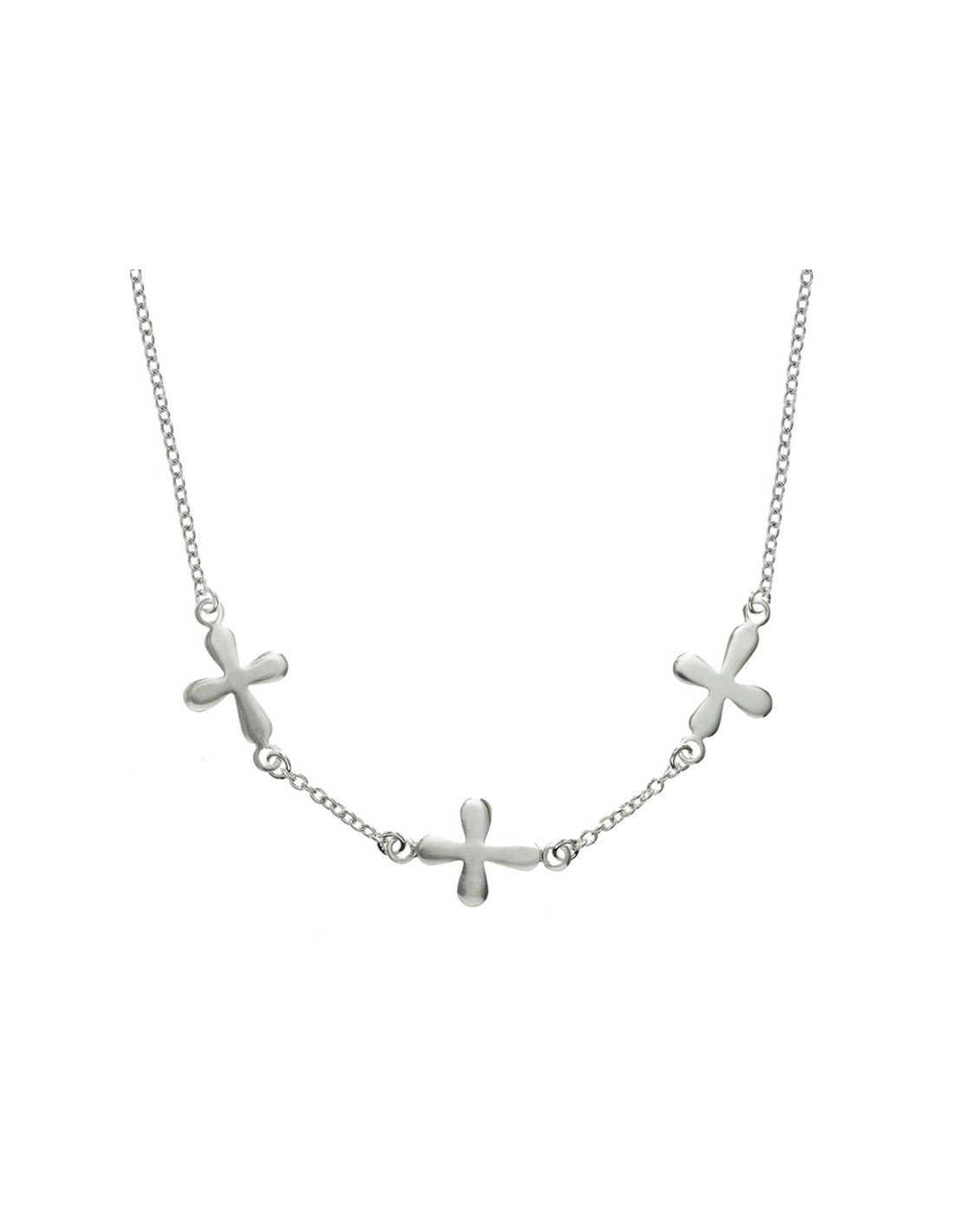 Collar ajustable con entrepiezas con diseño de cruz con puntas redondeadas, fabricado en Plata de Ley 925.
