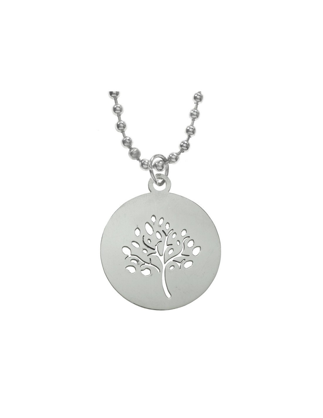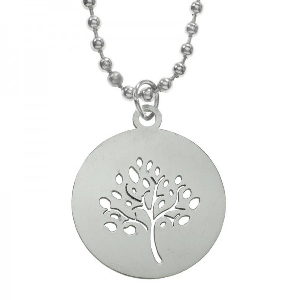 Collar árbol calado acero inoxidable con cadena de bolitas