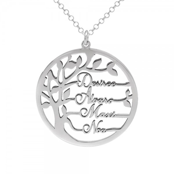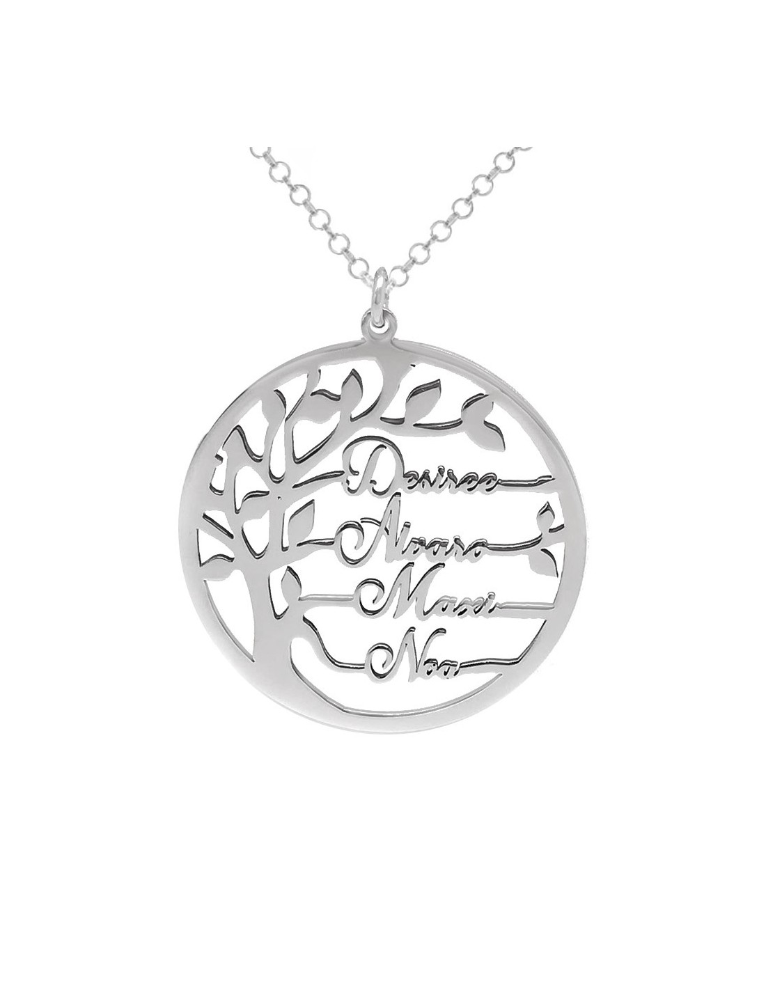 Collar árbol de la vida 4 nombres paralelos de Plata de Ley 925. Tamaño 30 mm.