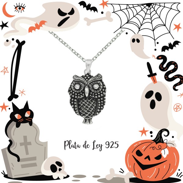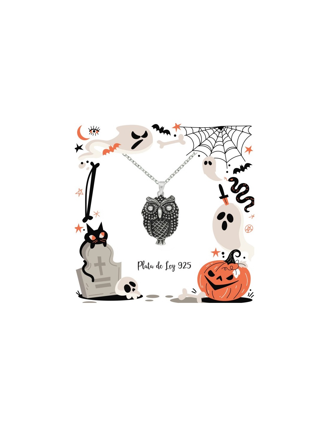 Collar búho envejecido Plata de Ley. Incluye cadena de 45 cm.