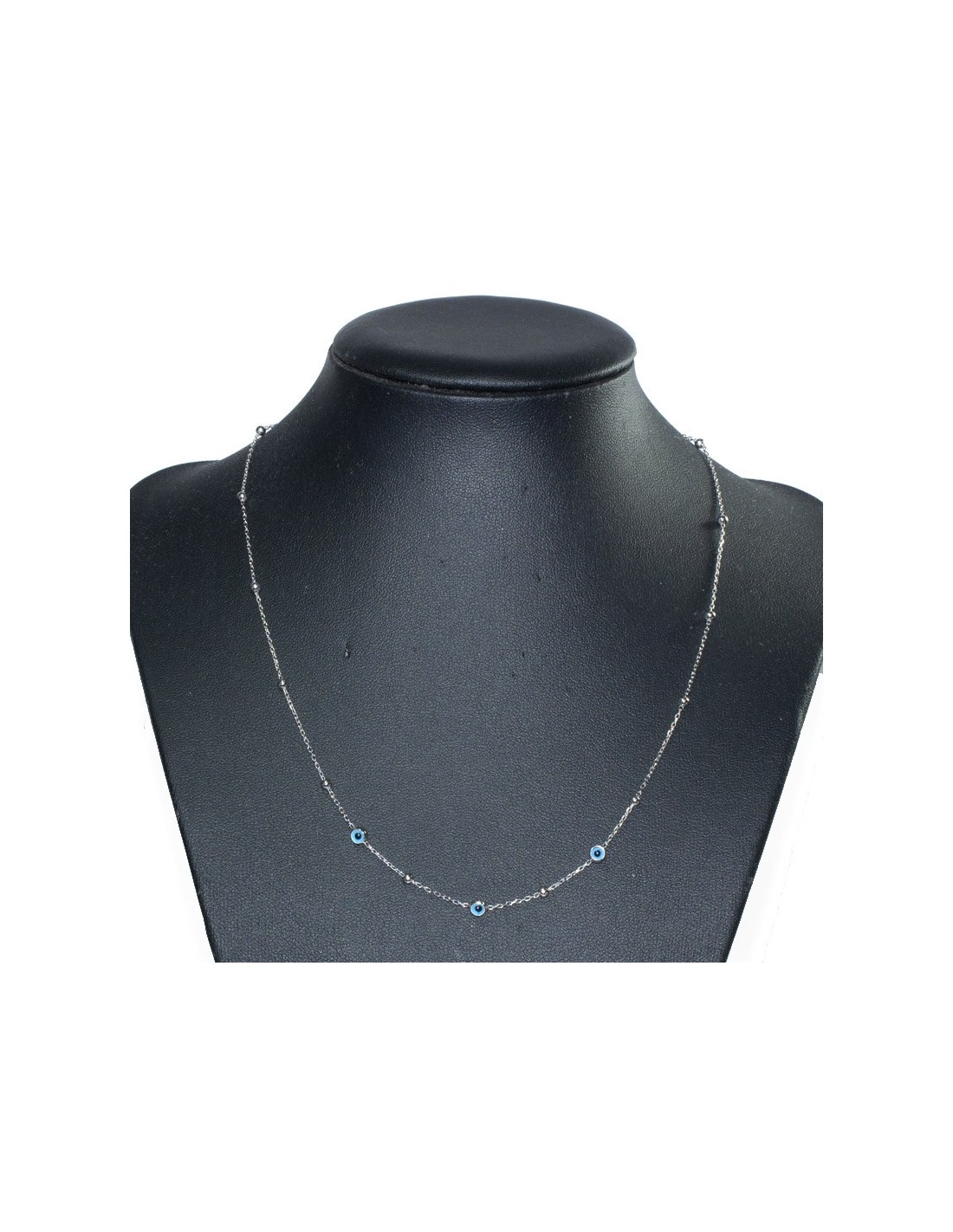 Collar cadena de bolitas con ojos turcos Plata de Ley