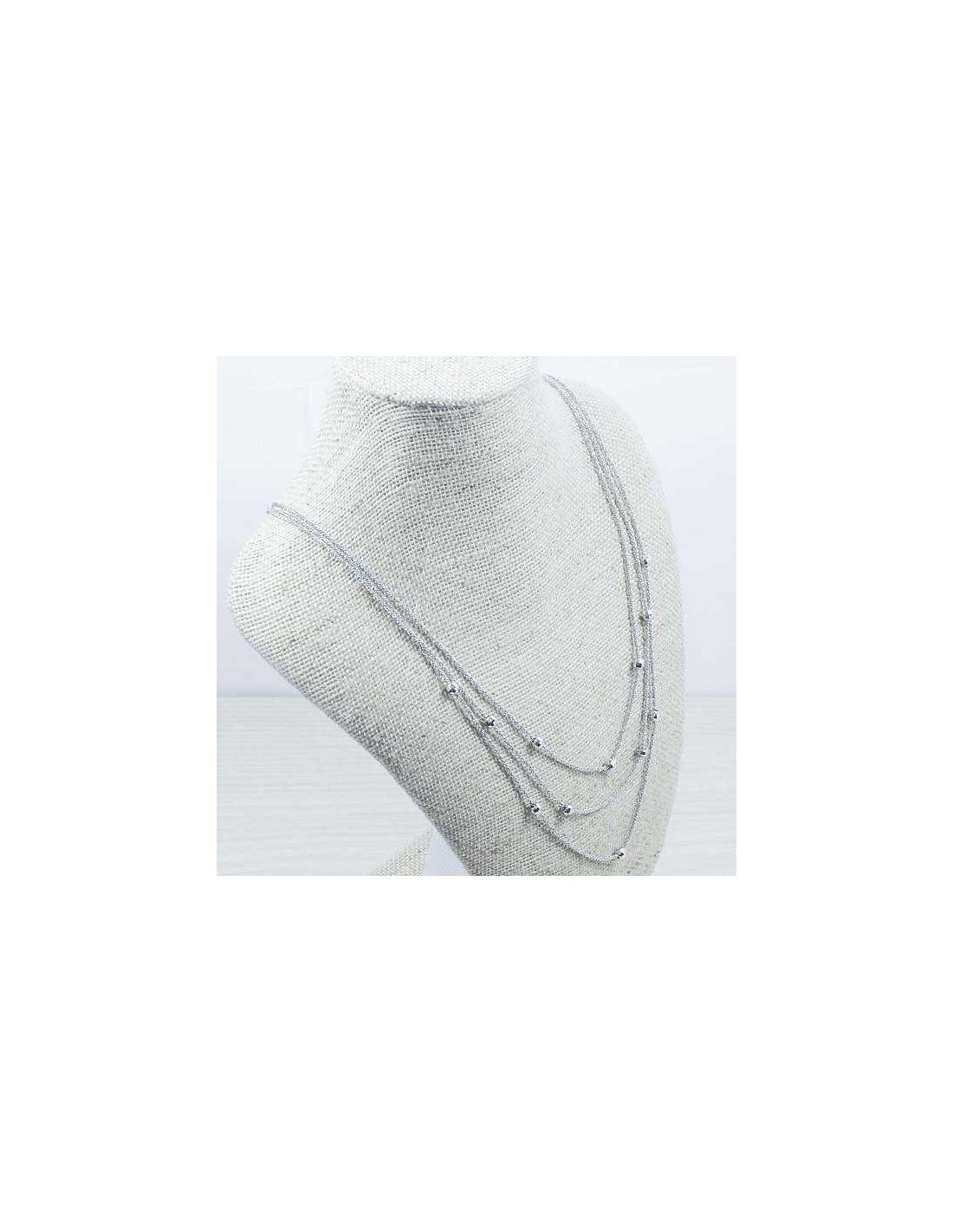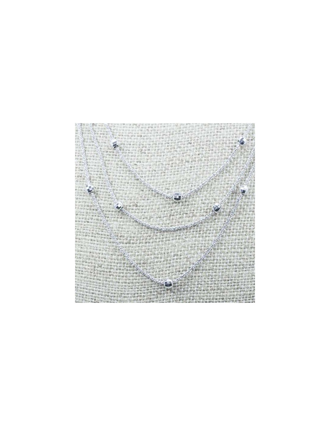 Colllar cadena rodiada diamantado tres vueltas con bolas facetadas Plata de Ley 925
