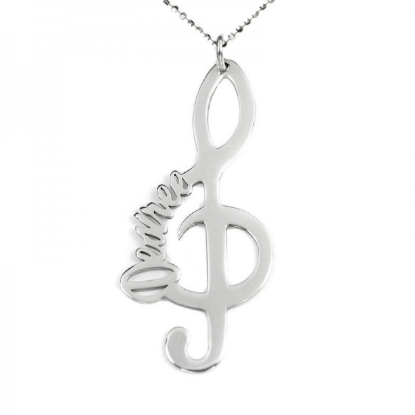 Collar clave de sol con nombre personalizado corte láser fabricado en Plata de Ley
