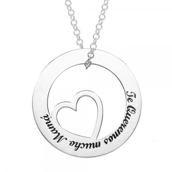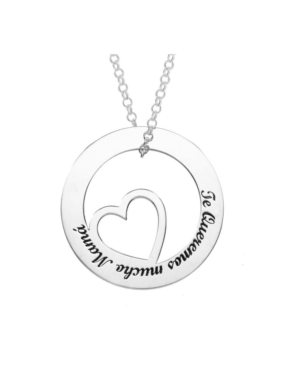 Collar con corazón y mensaje personalizado hecho en Plata de Ley con corte láser