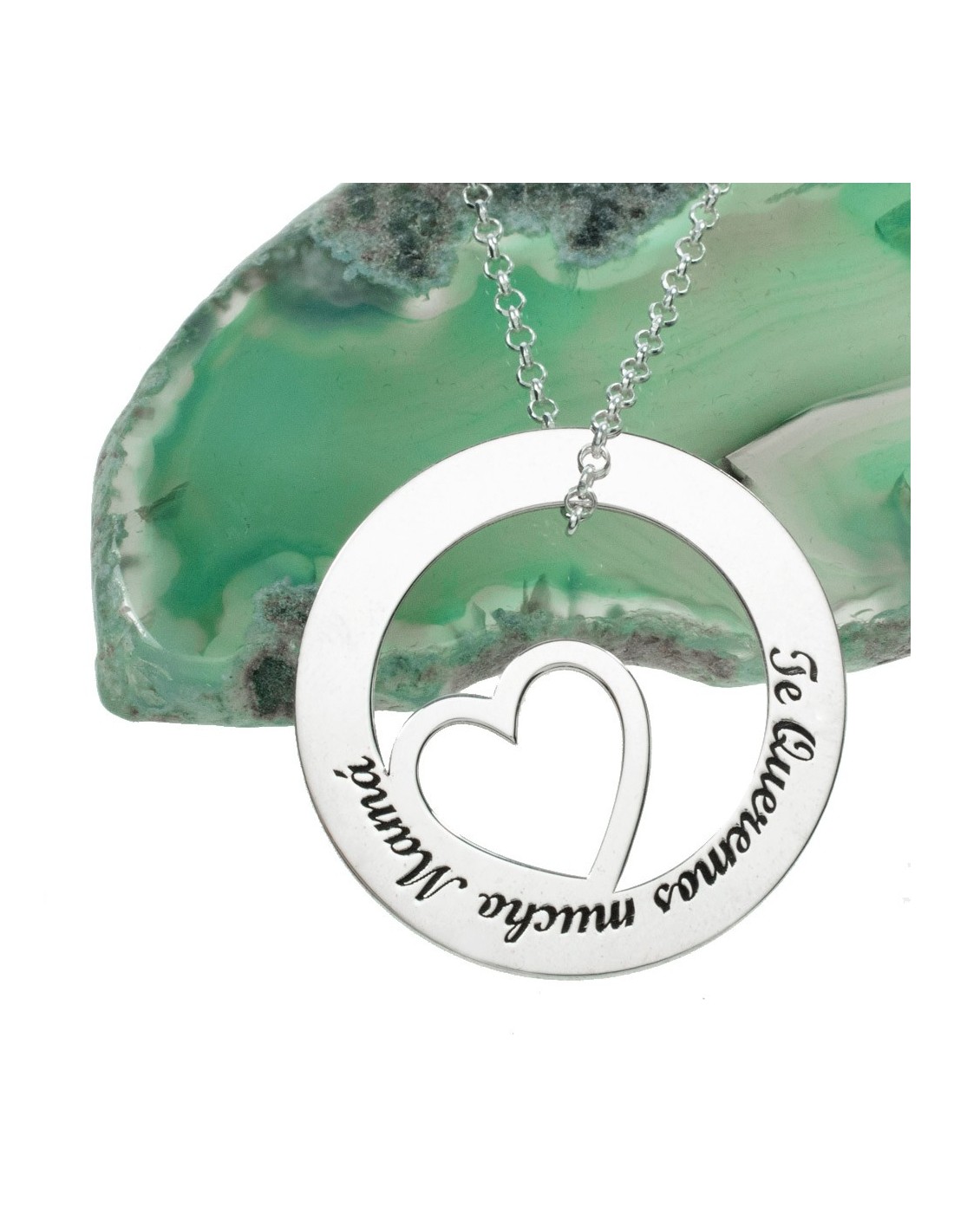 Collar con corazón y mensaje personalizado hecho en Plata de Ley con corte láser.