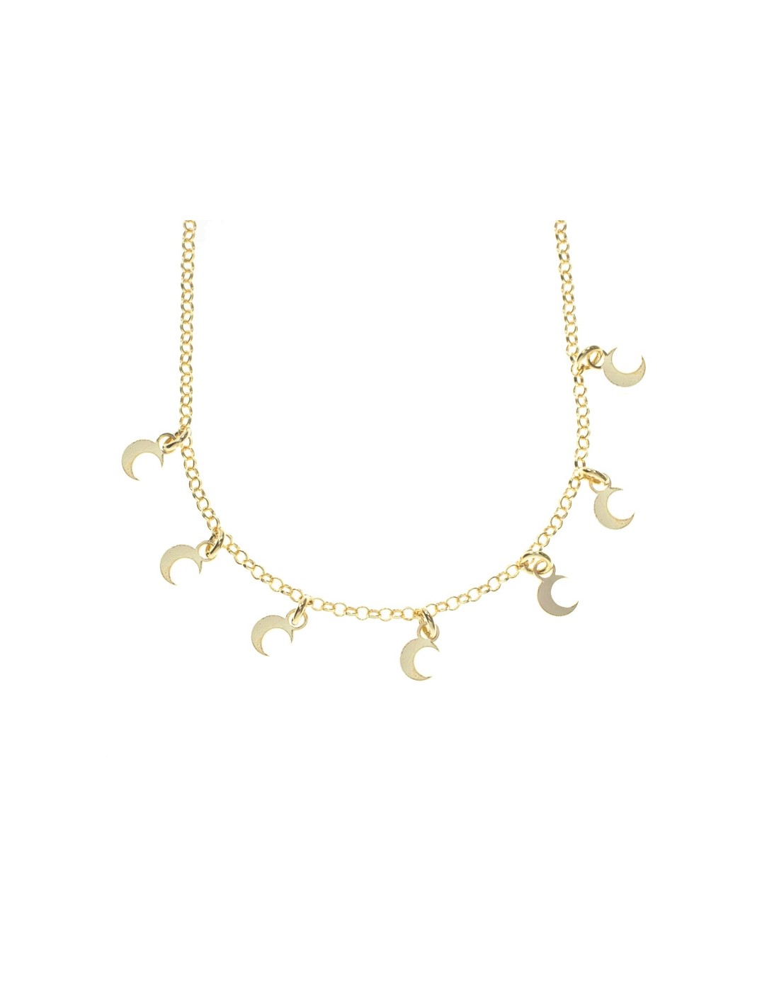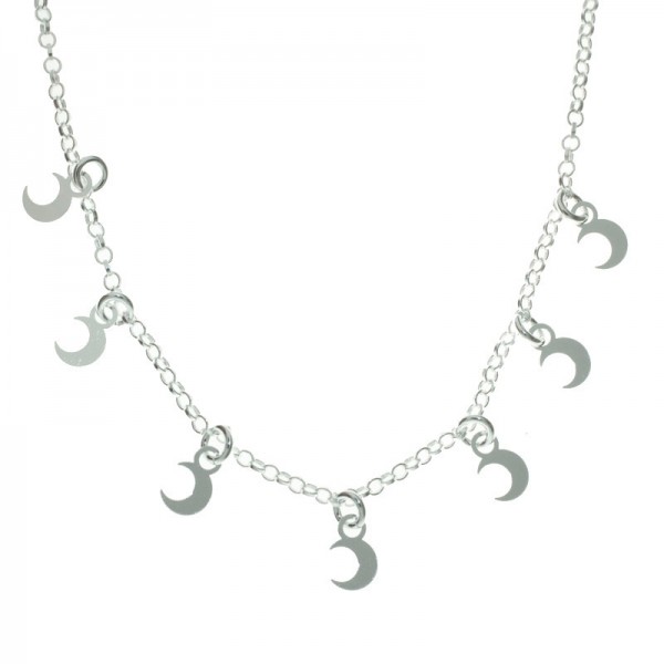 Collar con lunas colgantes fabricado en Plata de Ley y disponible con baño de Oro.