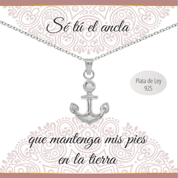 Collar ancla con mensaje fabricado en Plata de Ley 925. Cadena incluida.