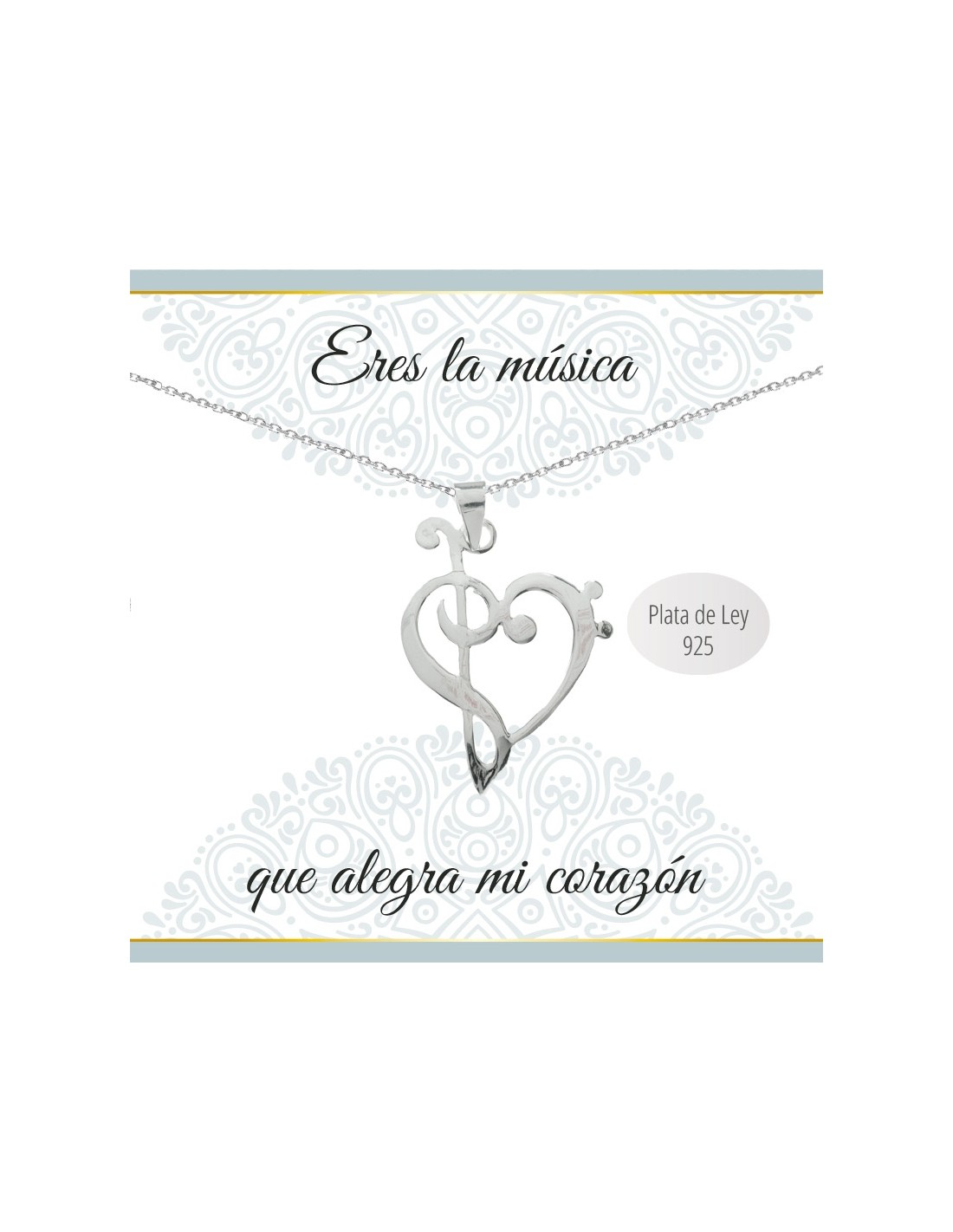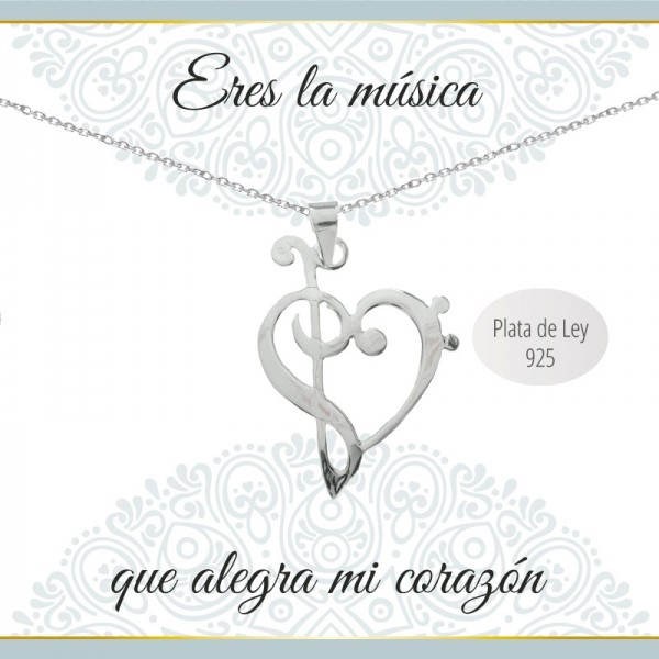 Collar con diseño de claves musicales y mensaje fabricado en Plata de Ley 925.
