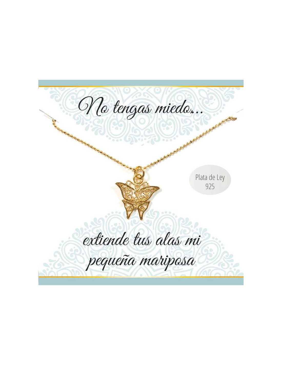 Collar mariposa con mensaje fabricado en Plata de Ley 925 chapado en Oro amarillo o rosa.