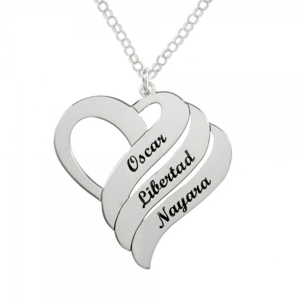 Collar corazón 1-3 nombres personalizado hecho en Plata de Ley con corte láser