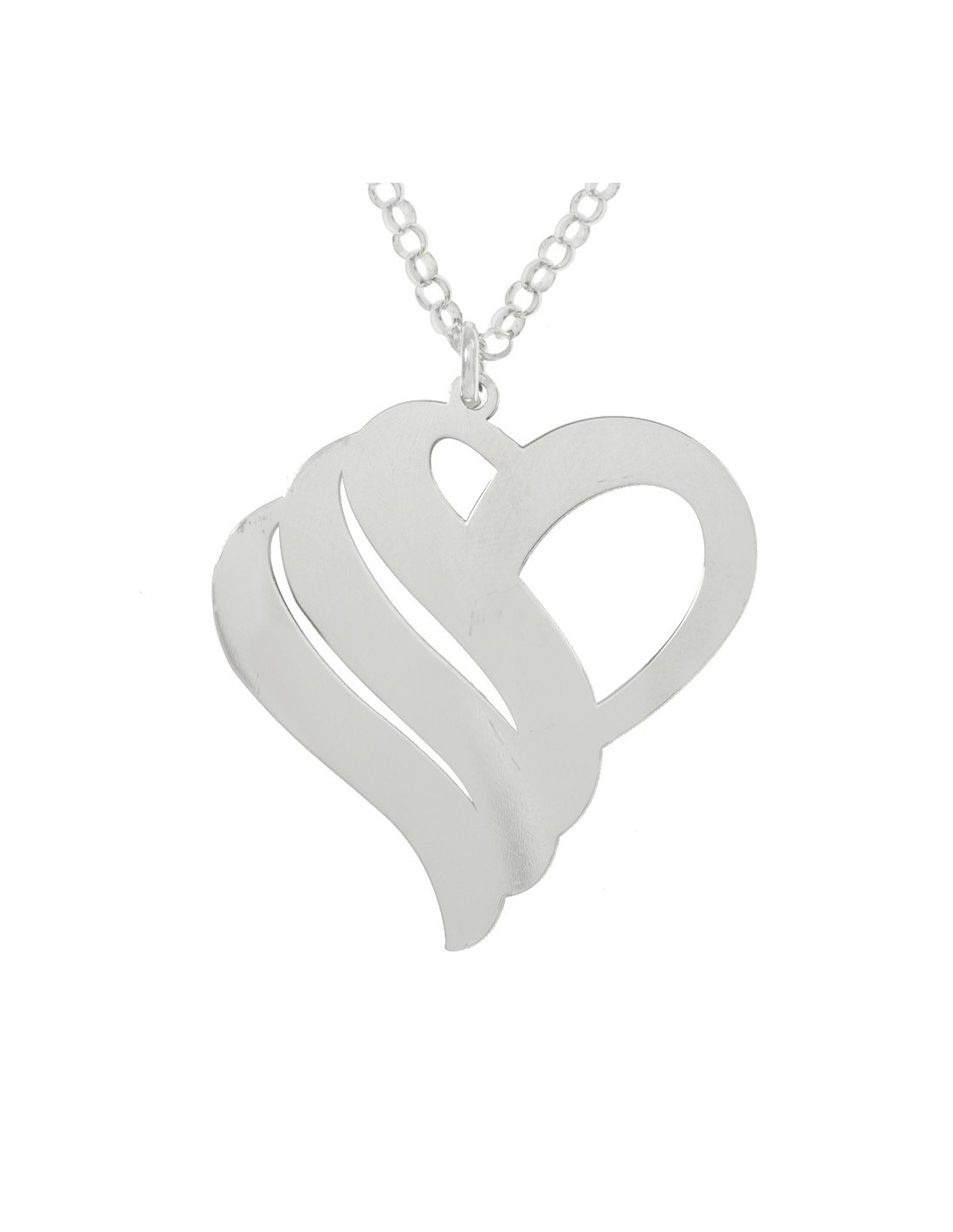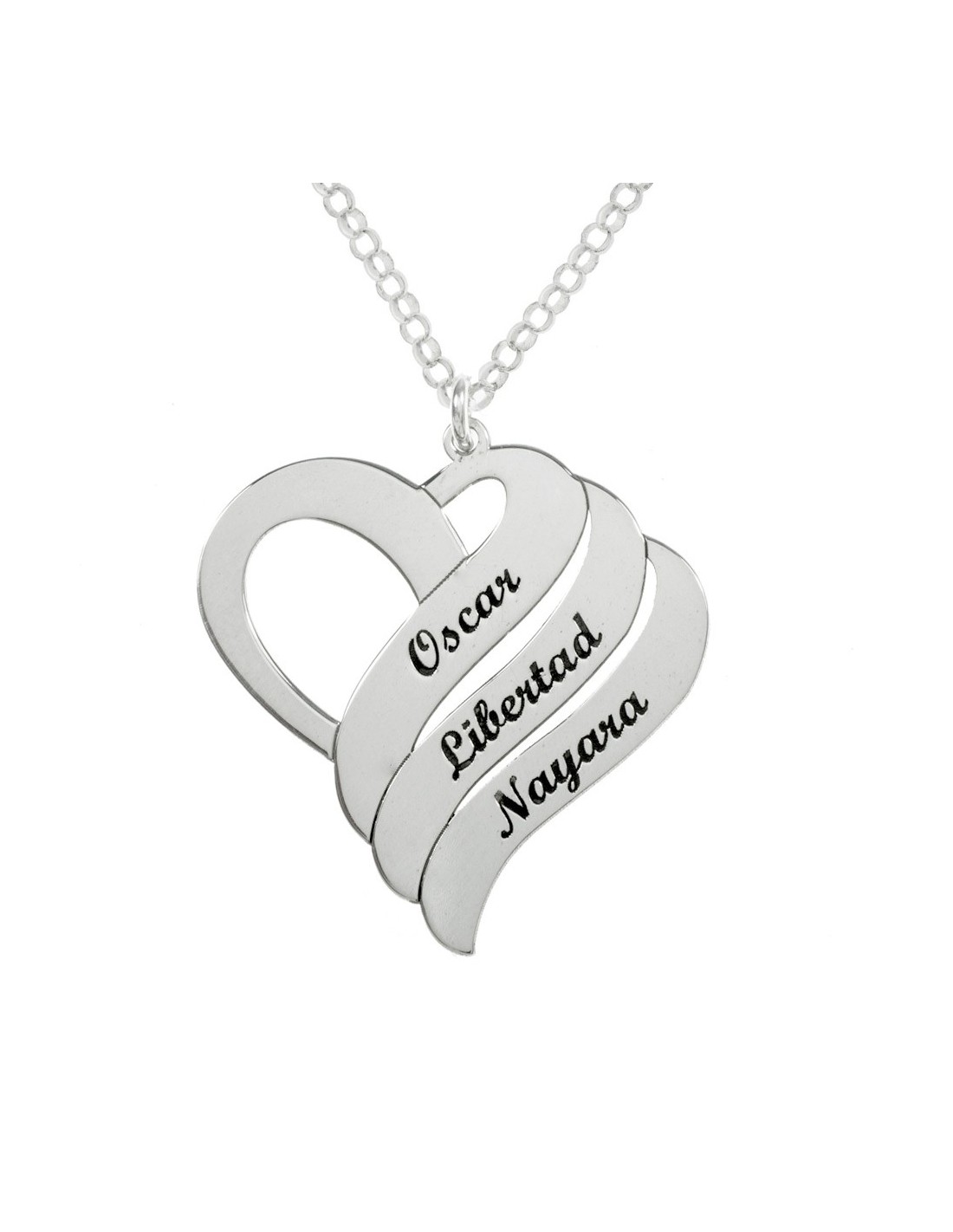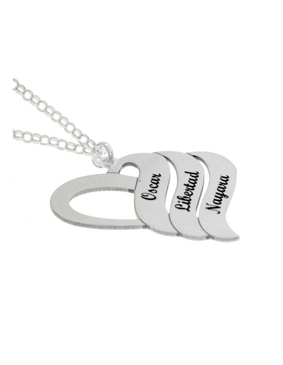 Collar corazón 1-3 nombres personalizado hecho en Plata de Ley con corte láser.