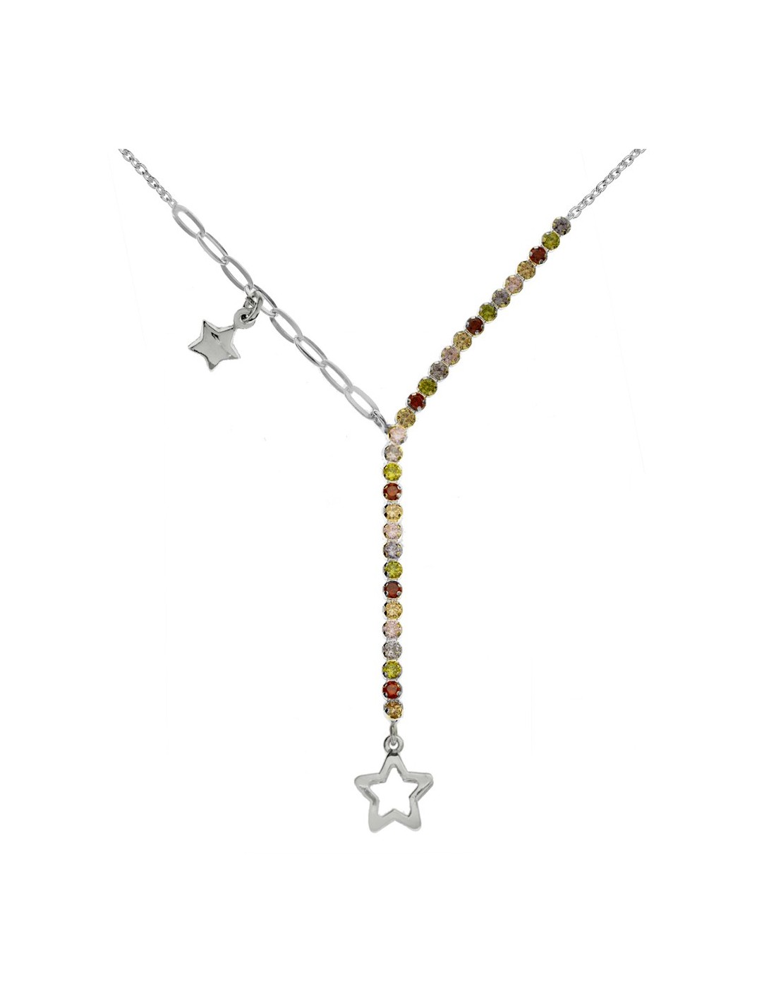 Collar corbatero con cristales de colores y colgante estrella fabricado en Plata de Ley.