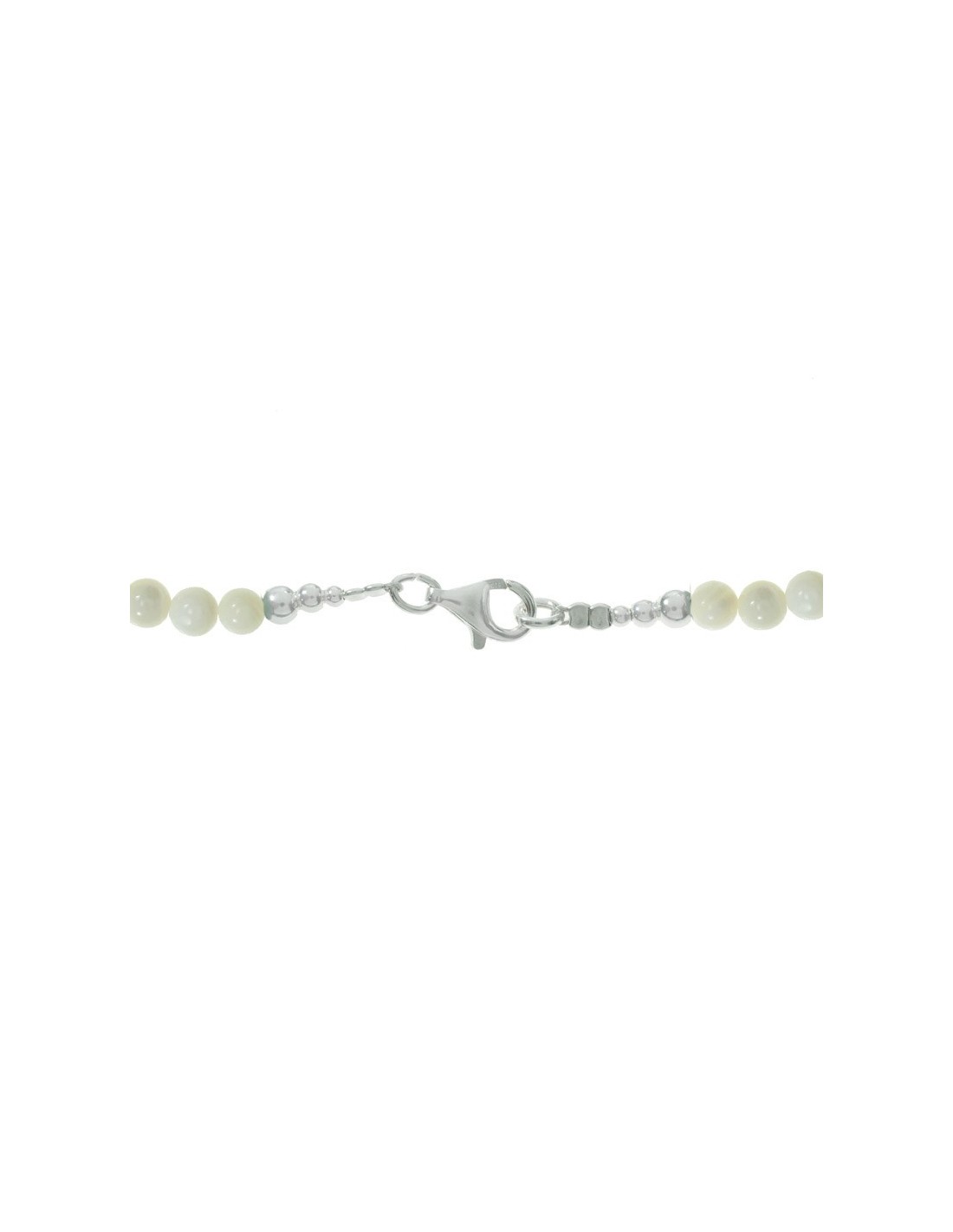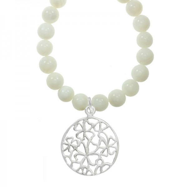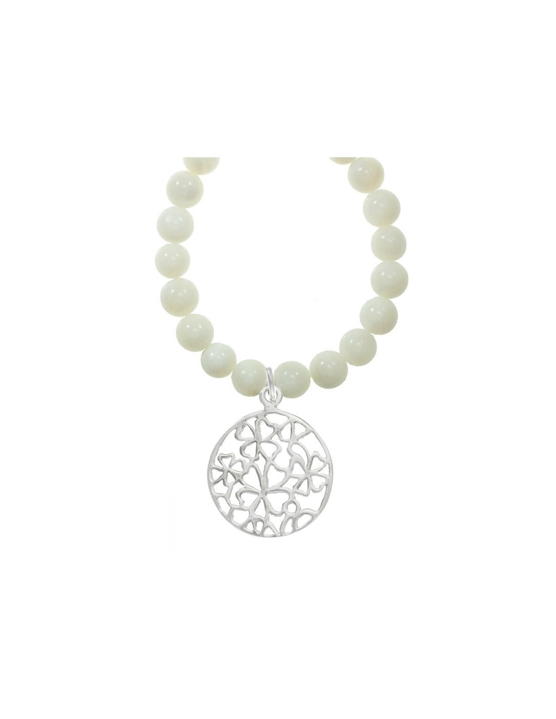Collar de nácar de 6 mm con colgante con calados florales fabricado en Plata de Ley 925.
