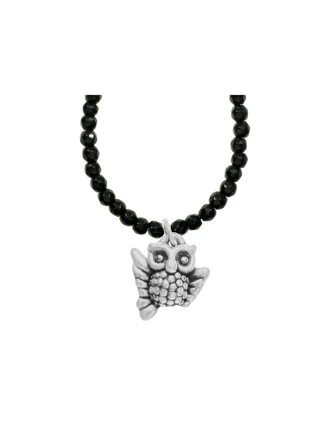 Collar de ónix con búho Suerte Plata de Ley