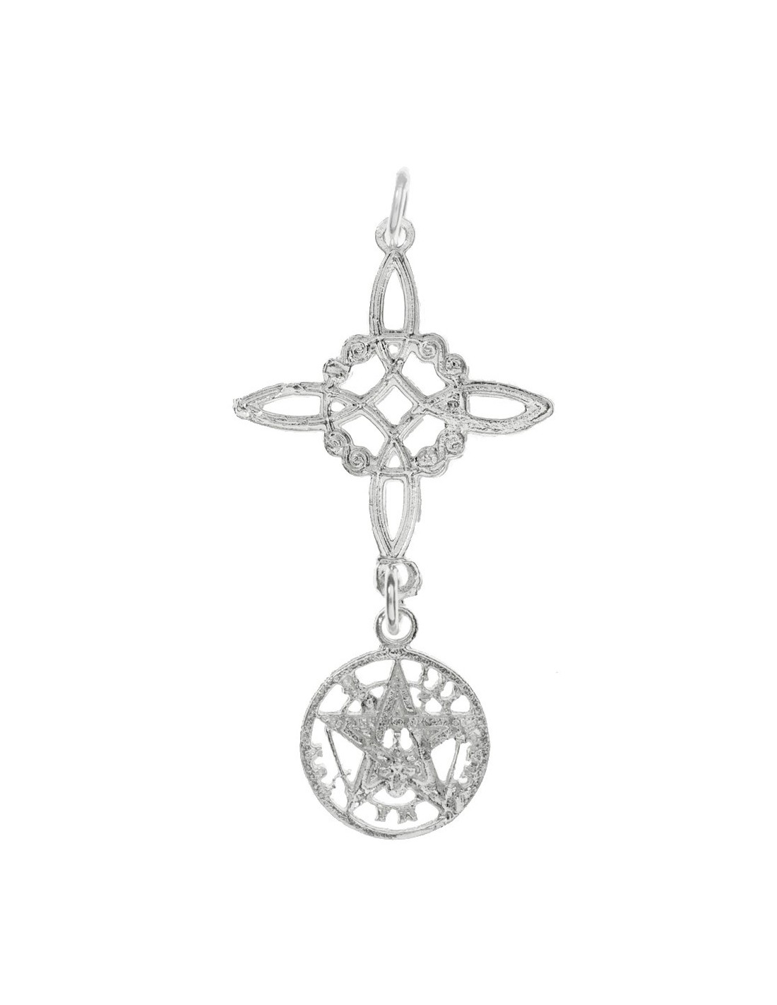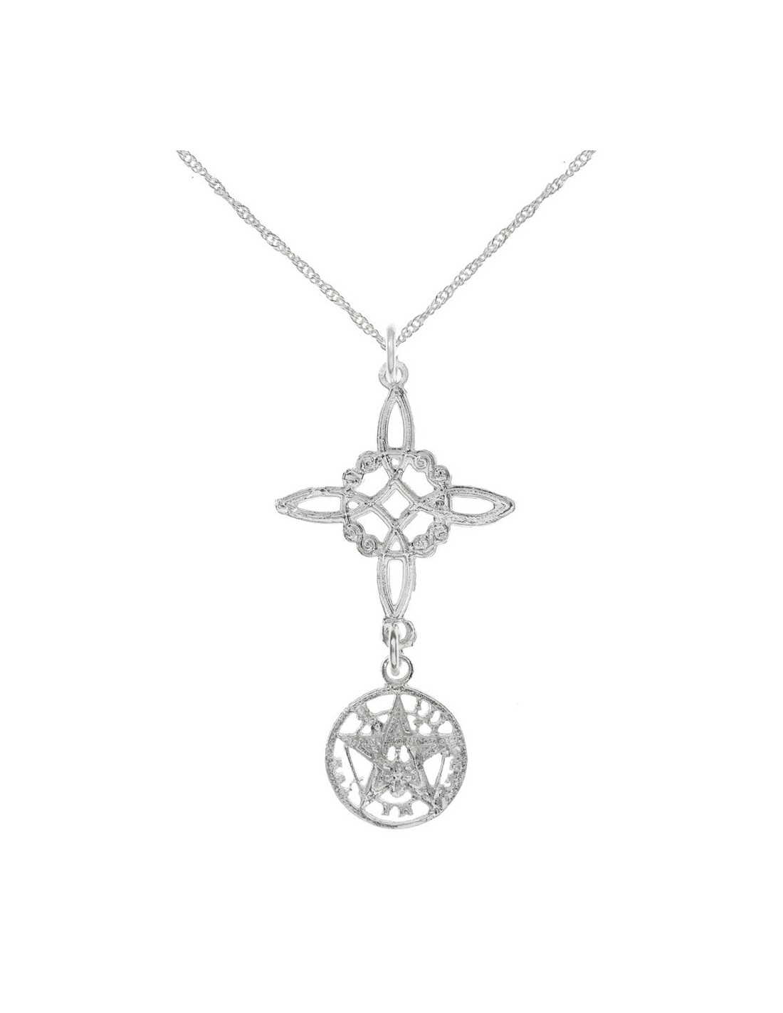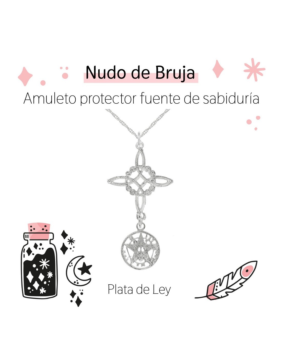 Collar con doble amuleto protector nudo de bruja y tetragrámaton fabricado en Plata de 1ª Ley 925