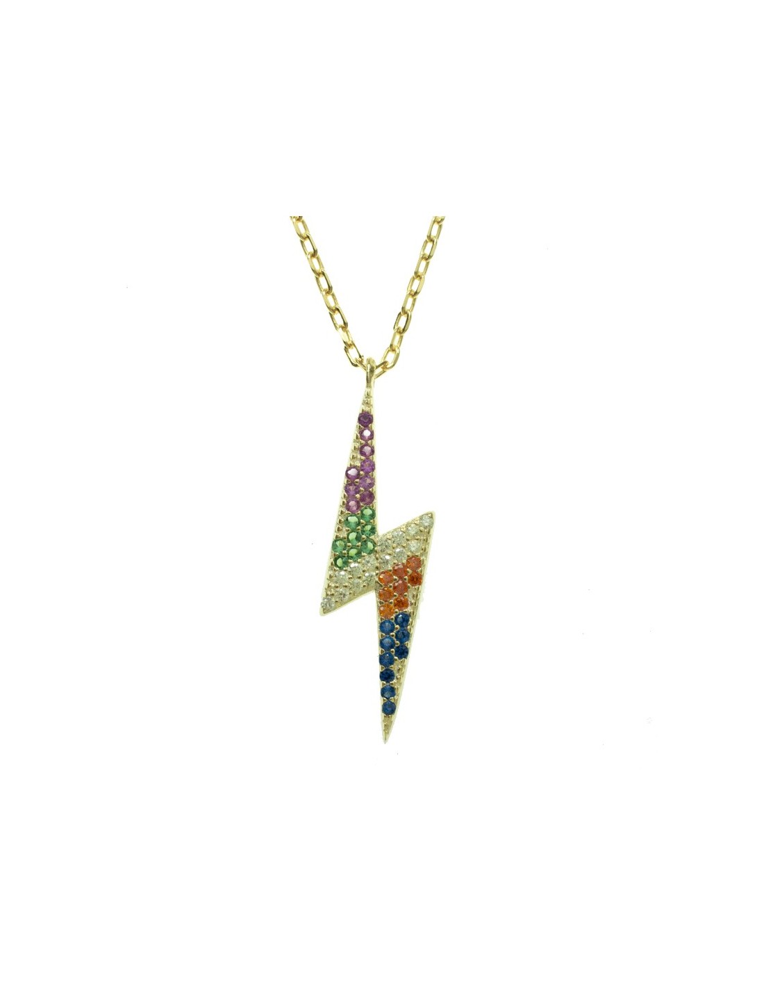 Collar ajustable diseño rayo con circonitas de colores fabricado en Plata de Ley con baño de Oro