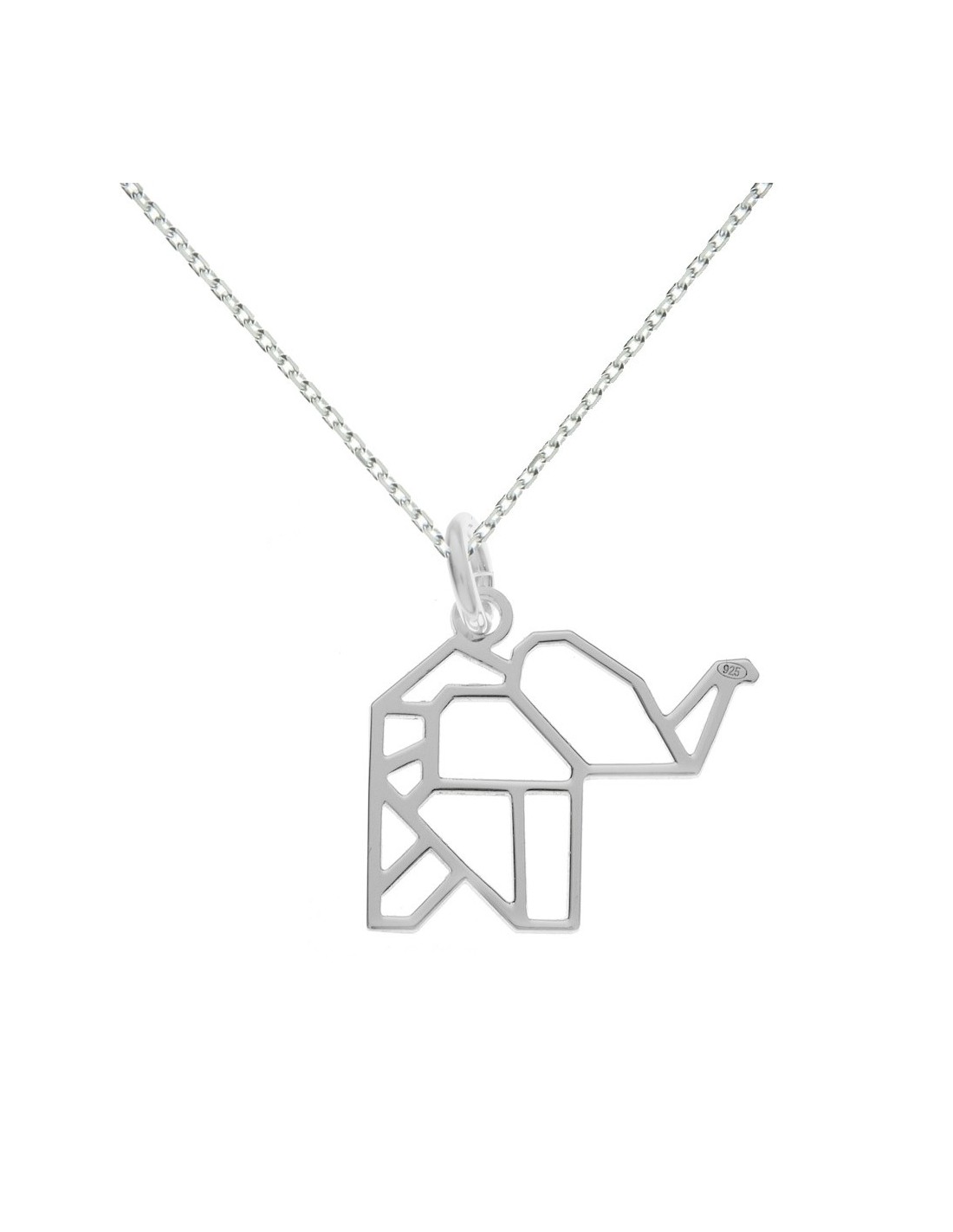 Collar estilo geométrico con elefante origami fabricado en Plata de Ley