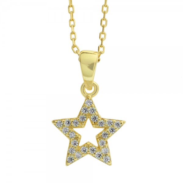 Collar estrella dorada con circonitas fabricado en Plata de Ley bañada en Oro.
