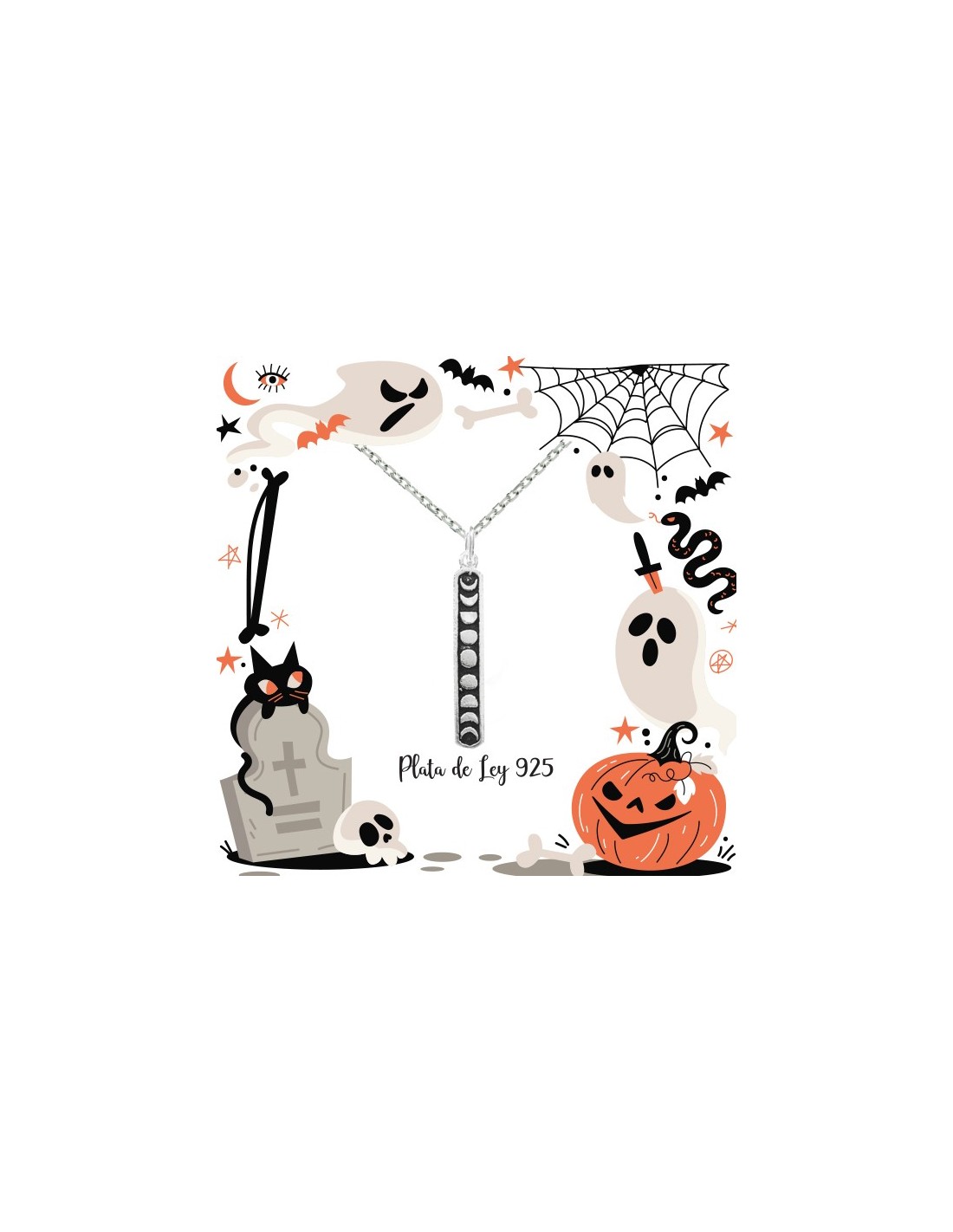 Collar fases lunares vertical Plata de Ley. Incluye cadena de 45 cm.