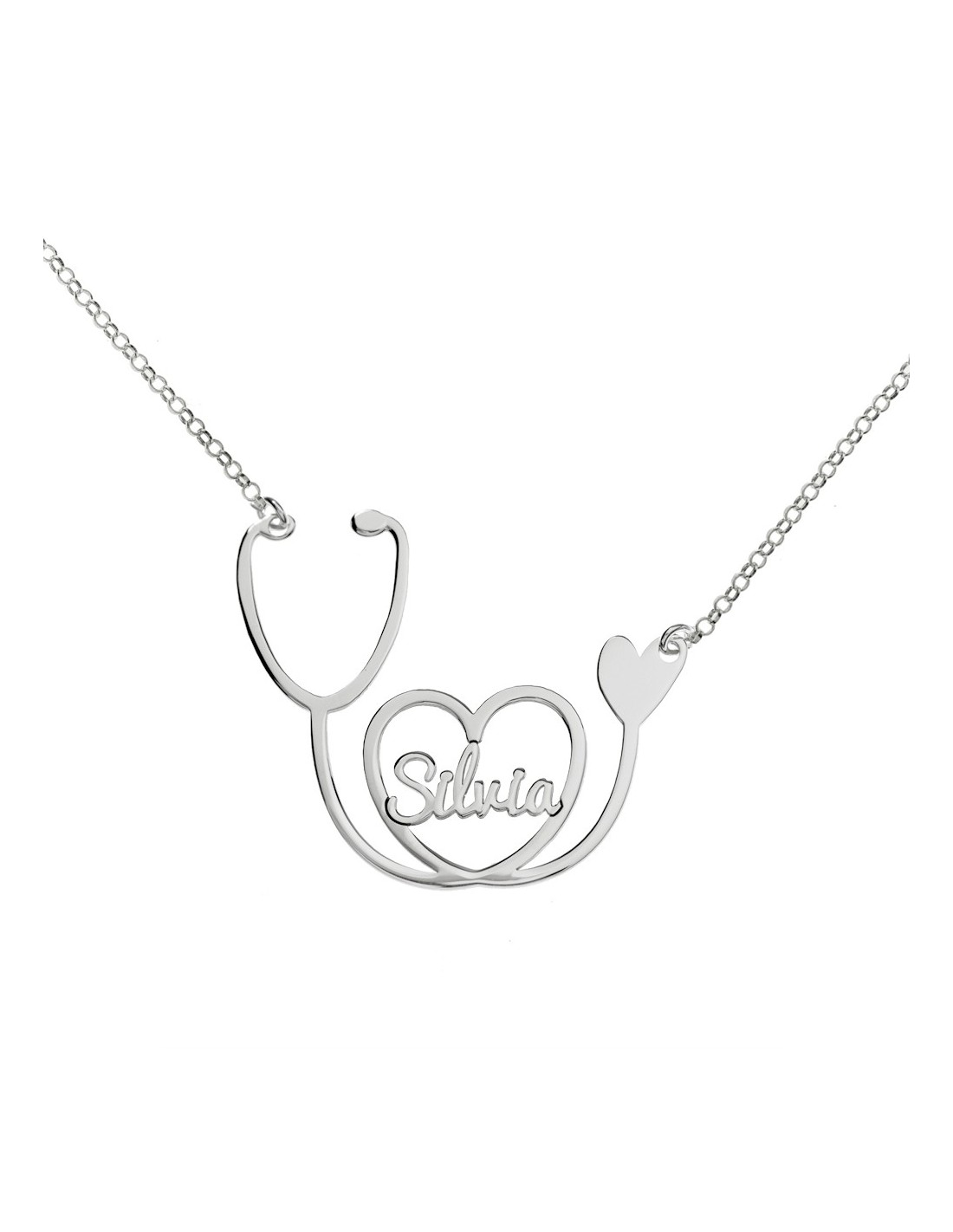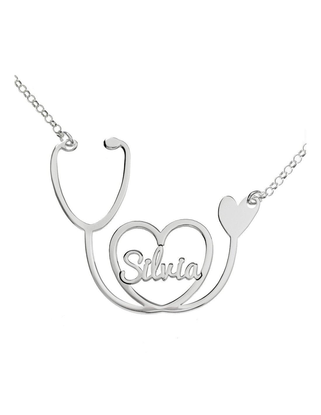 Collar fonendoscopio con nombre personalizado hecho en Plata de Ley con corte láser