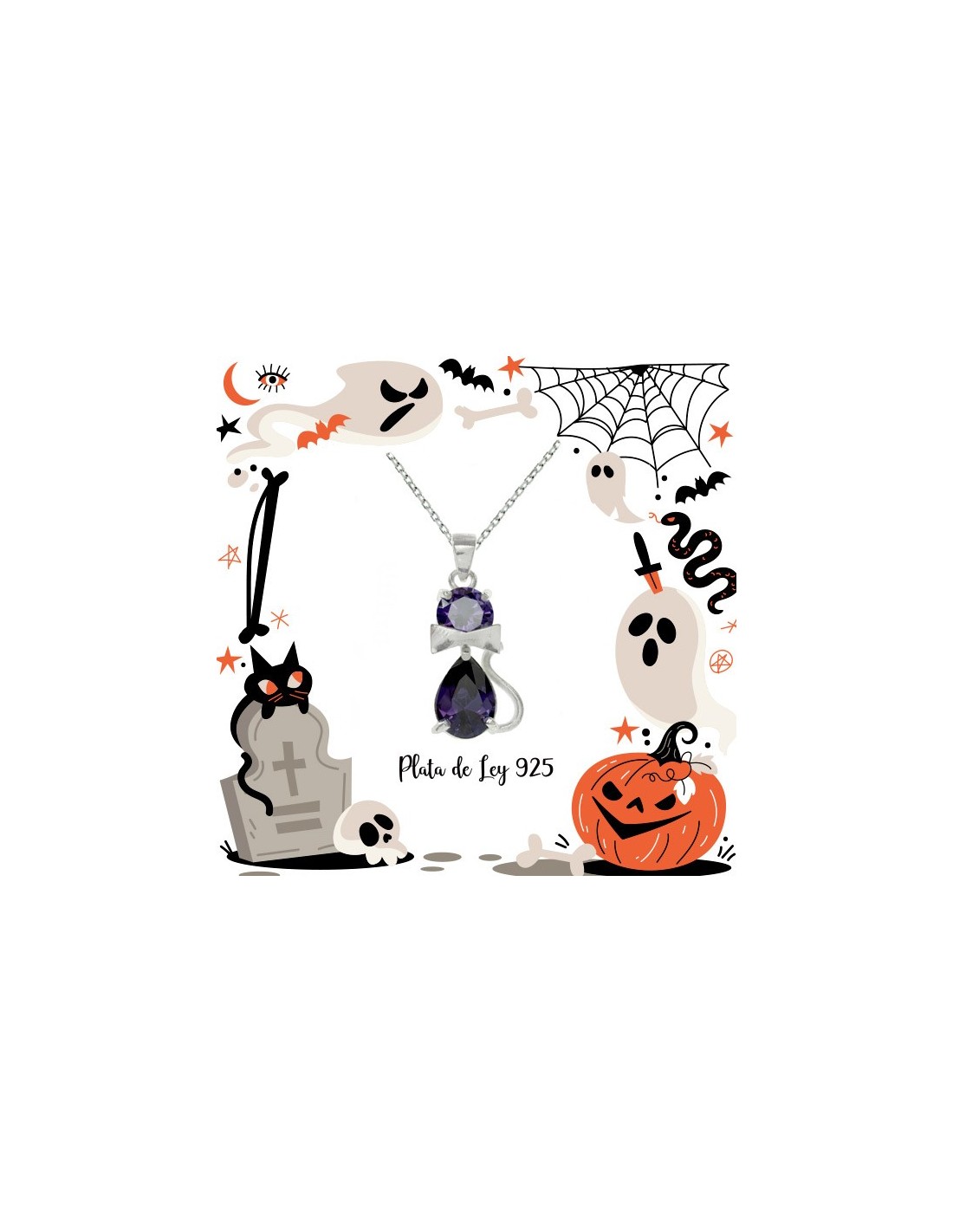 Collar gato Zirconia Plata de Ley. Incluye cadena de 45 cm.
