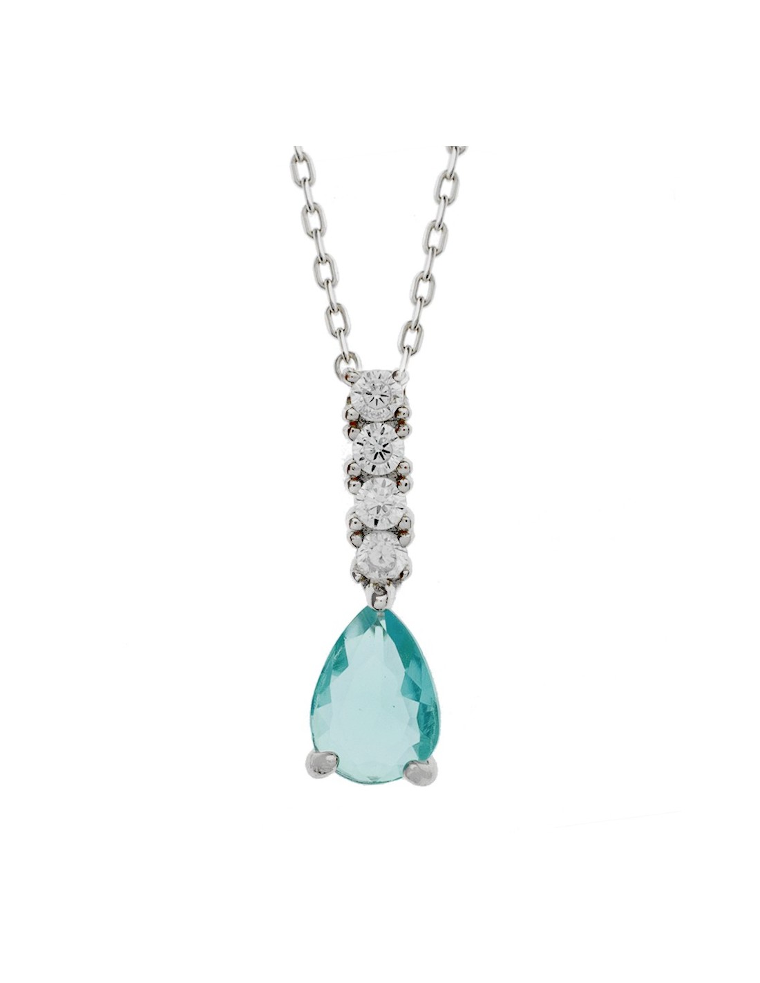 Collar gota de cristal azul Plata de Ley. Disponible con baño de Oro