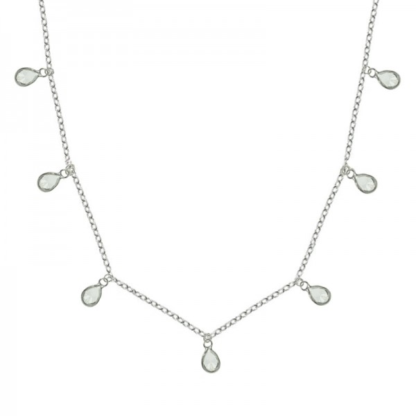 Collar ajustable gotas de cristal facetadas fabricado en Plata de Ley.