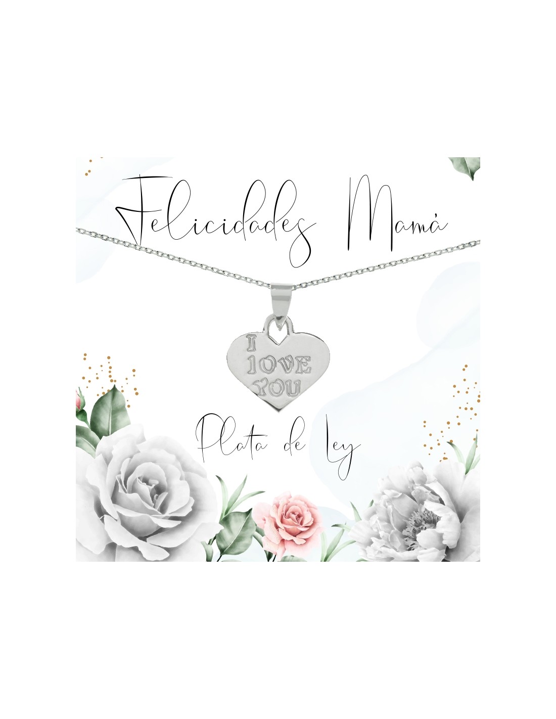 Collar I LOVE YOU con mensaje para mamá con preciosa tarjeta de felicitación listo para regalar.