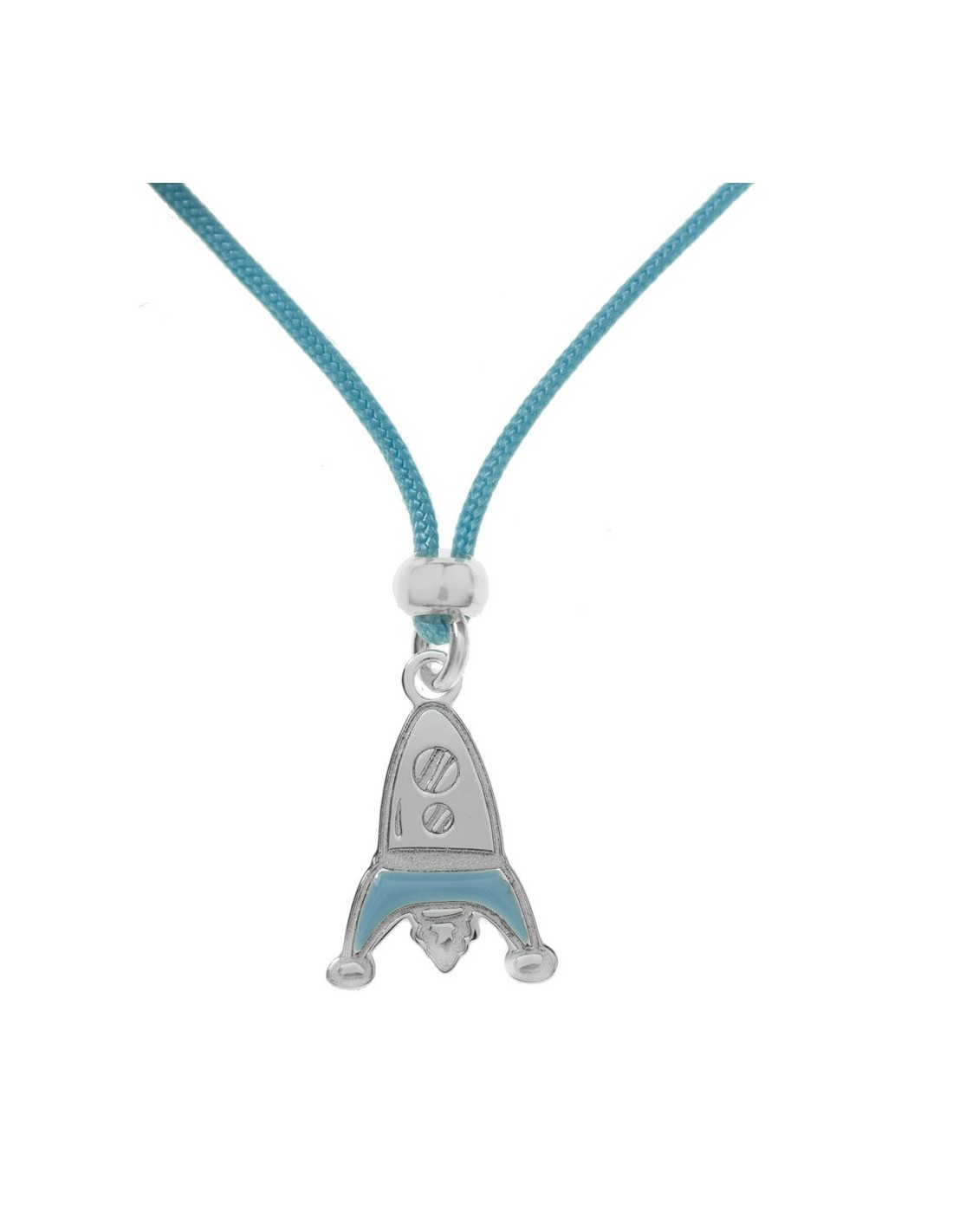 Collar infantil con colgante cohete fabricado en Plata de Ley y nylon