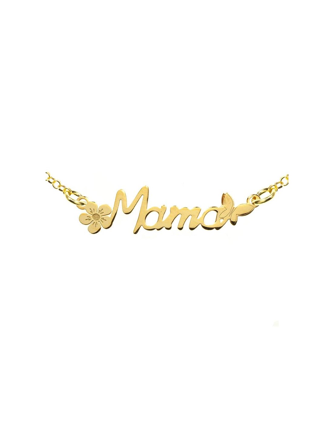 Collar Mamá detalle flor y mariposa Plata de Ley