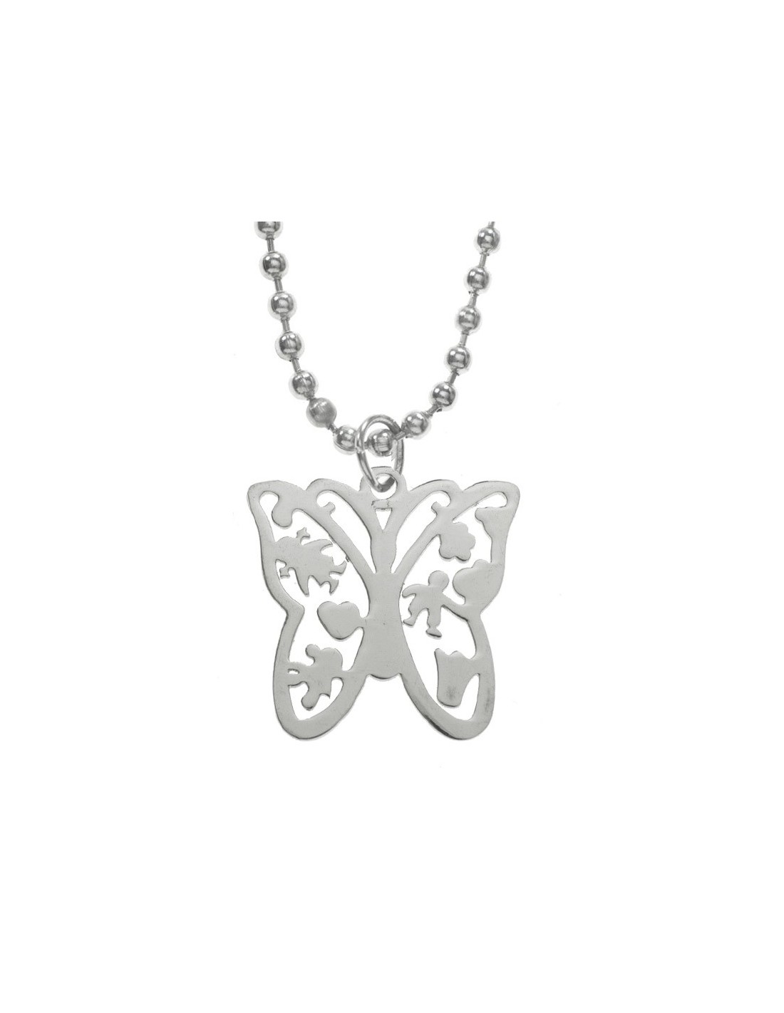 Collar mariposa acero inoxidable con cadena de bolitas