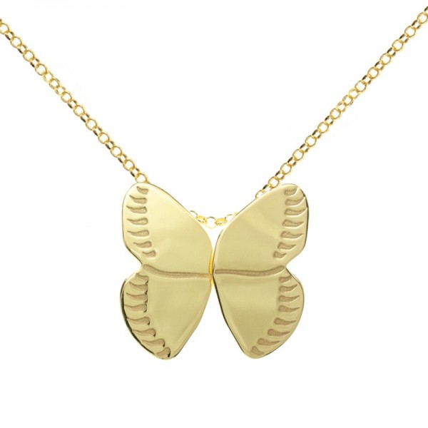 Collar mariposa dorada con alas móviles fabricado en Plata de Ley con baño de Oro