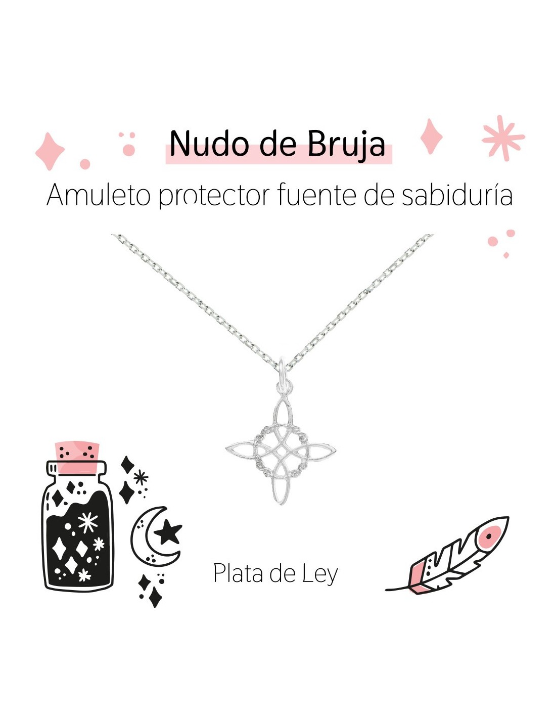 Collar nudo de bruja Plata de Ley