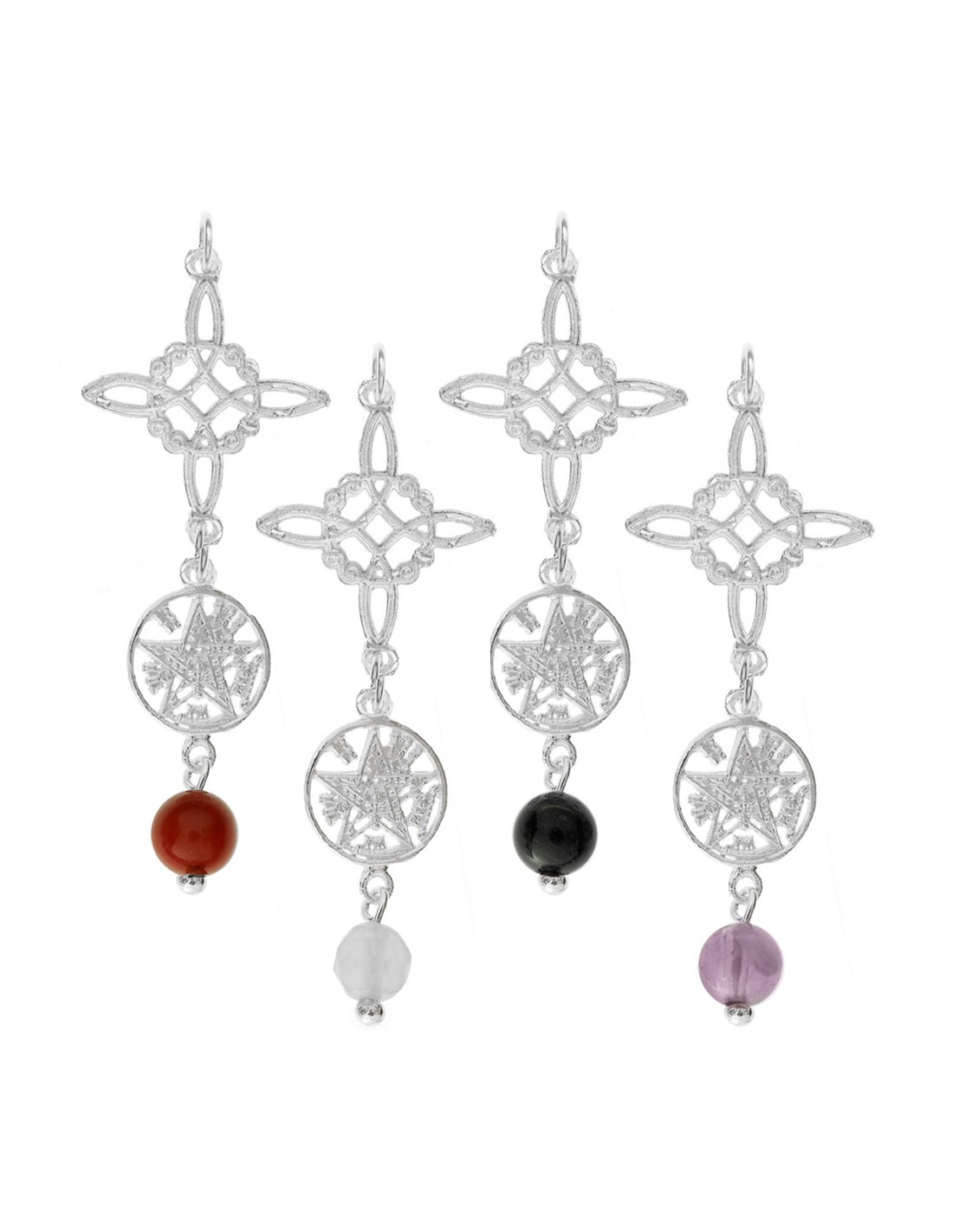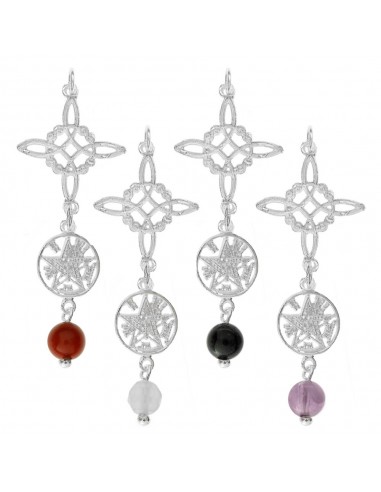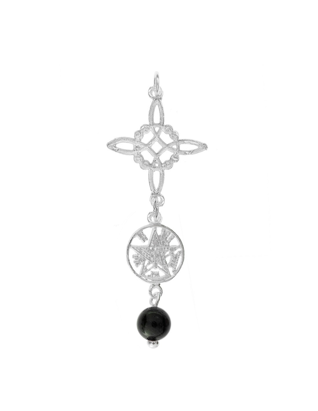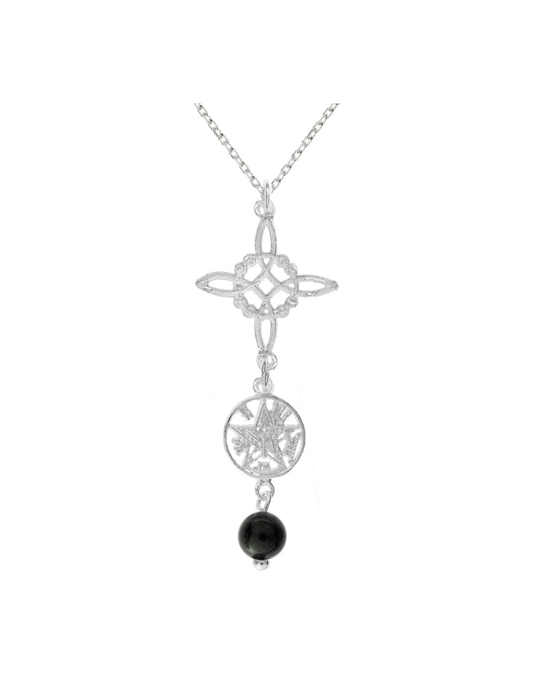 Colgante amuleto doble protección con Nudo de Bruja & Tetragrámaton y piedra natural fabricado en Plata de 1ª Ley 925. Incluye cadena de 45 cm.