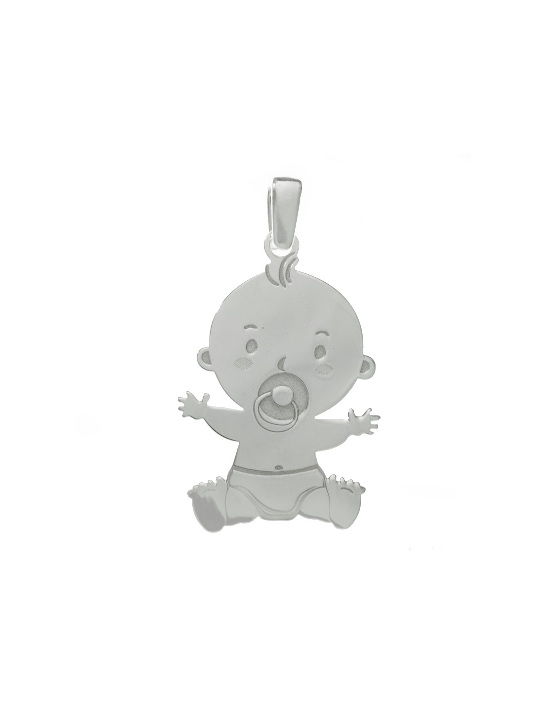 Collar recuerdo de mi nacimiento con niño o niña para grabar y cadena incluida, fabricado en Plata de Ley 925.