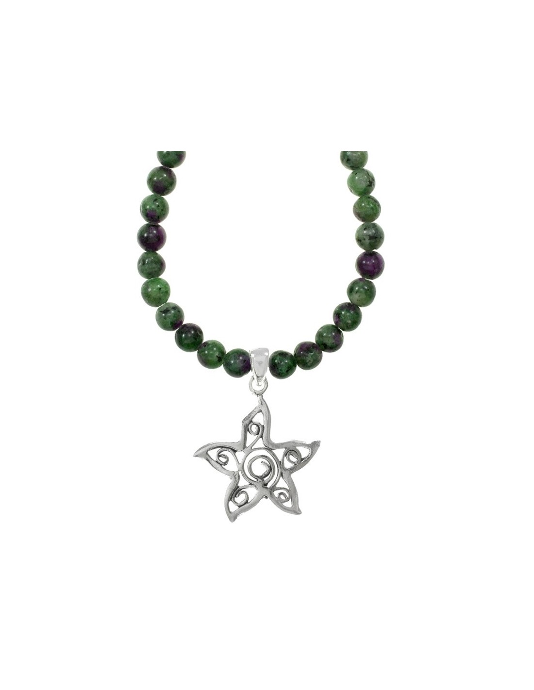 Collar de rubí Zoisita con estrella Plata de Ley