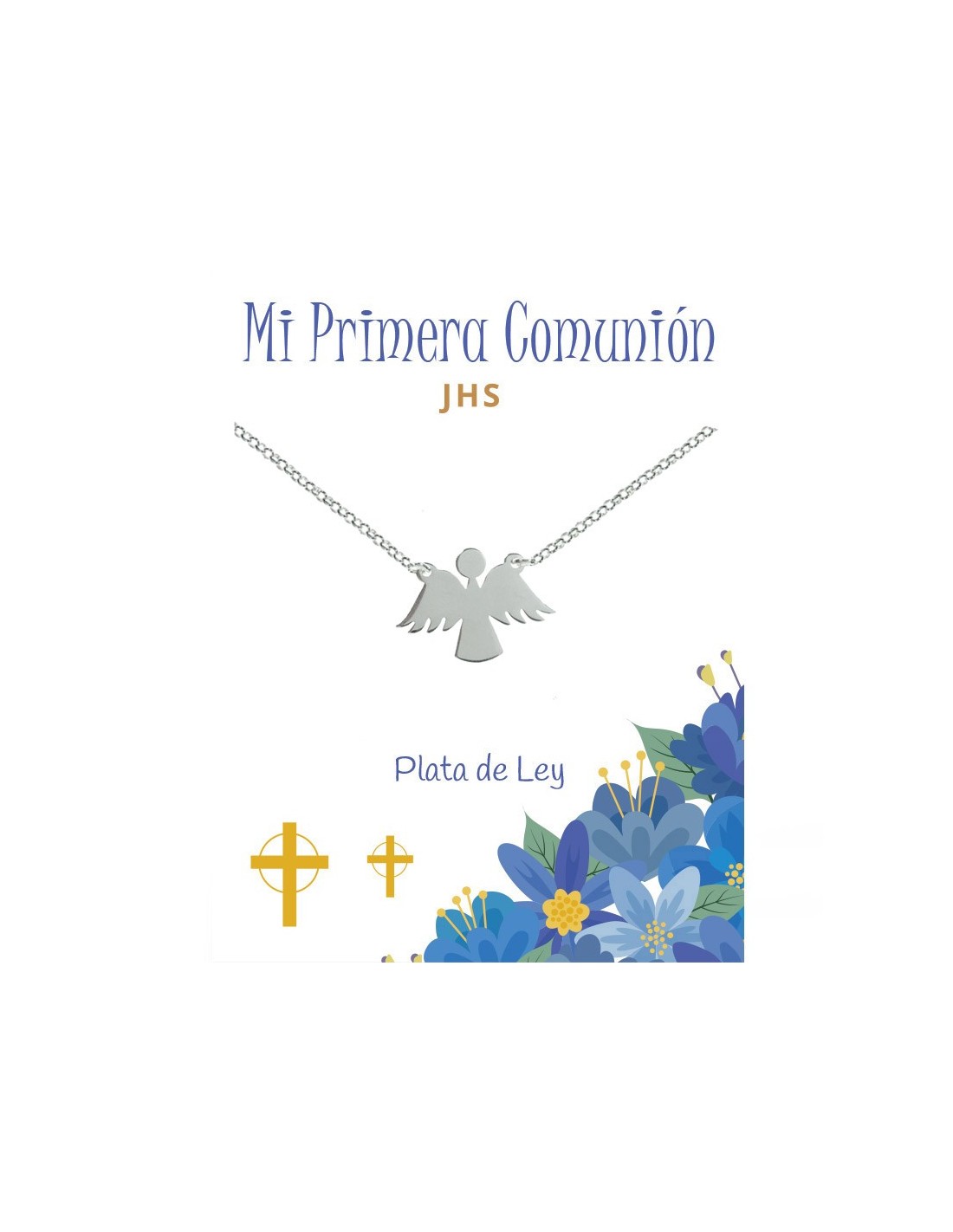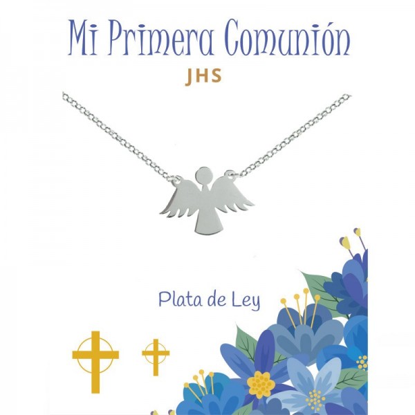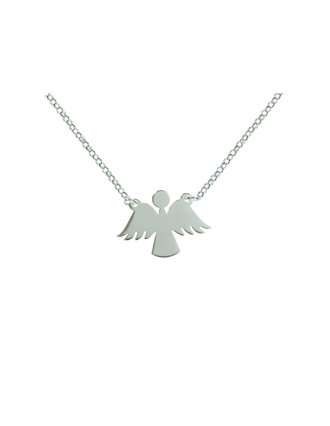 Collar con cadena Roló y entrepieza plana silueta de ángel, fabricado en Plata de Ley 925 con acabado liso.