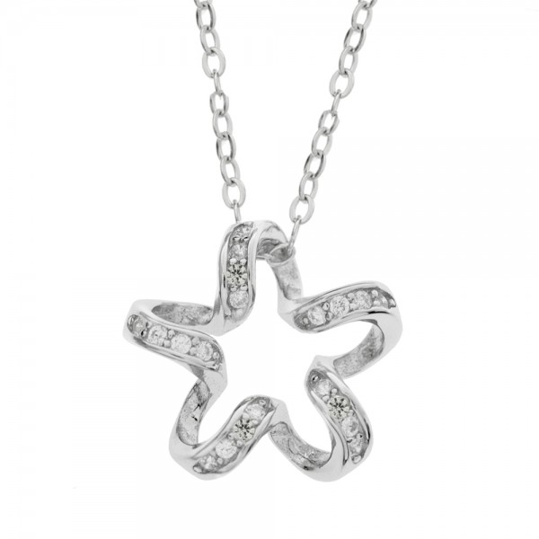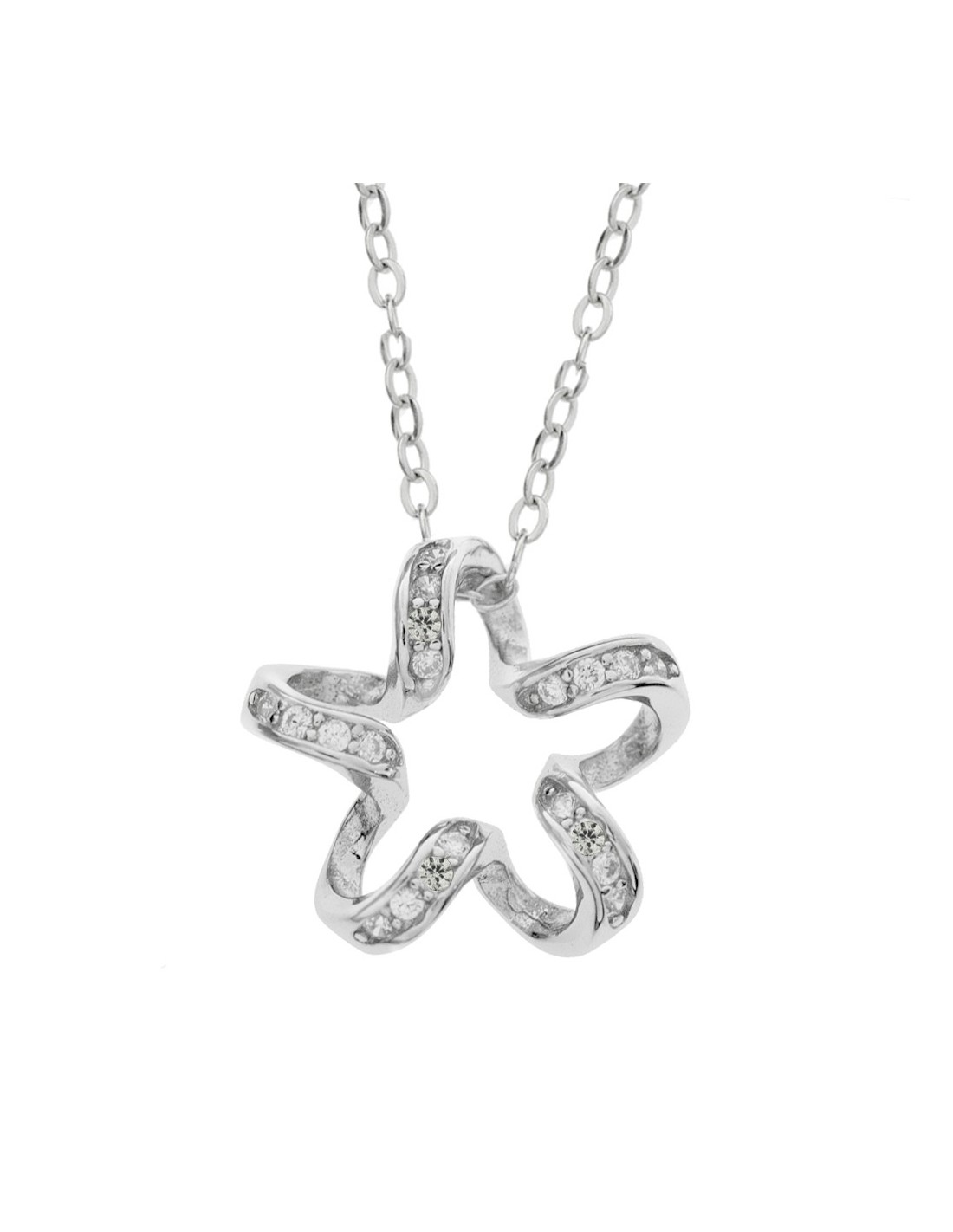 Collar silueta flor ondulada con circonitas blancas fabricado en Plata de Ley