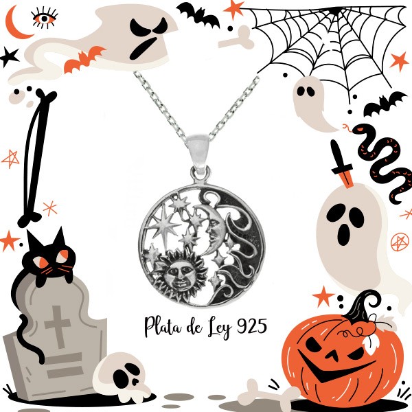 Collar sol & luna calado Plata de Ley envejecida. Incluye cadena de 45 cm.