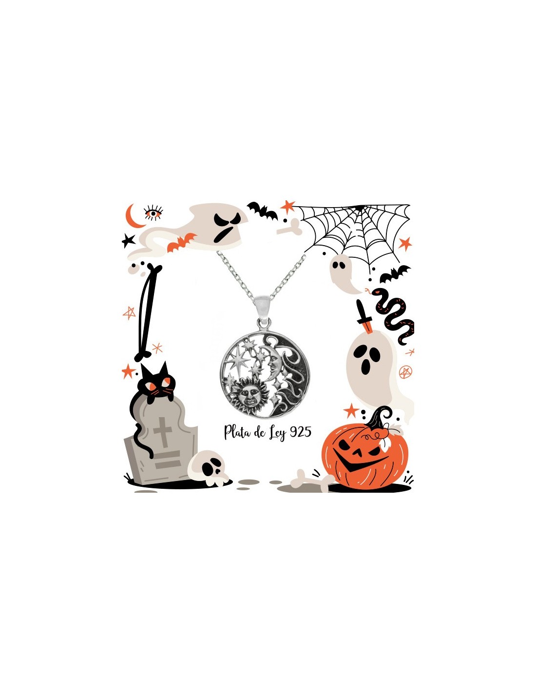 Collar sol & luna calado Plata de Ley envejecida. Incluye cadena de 45 cm.