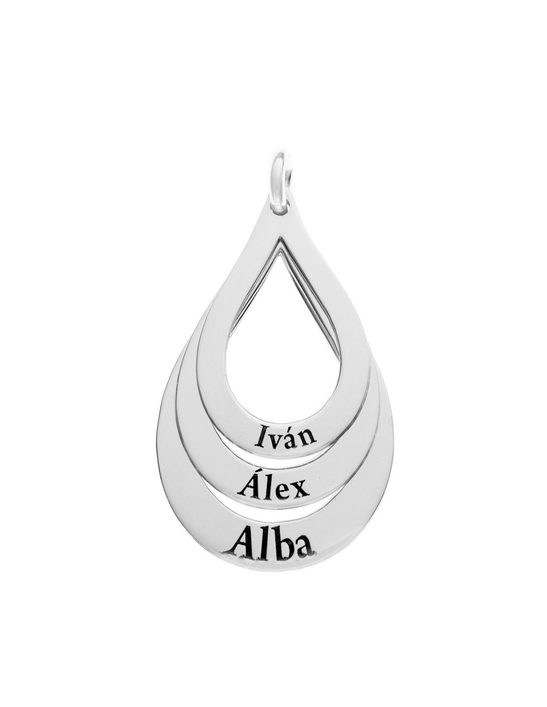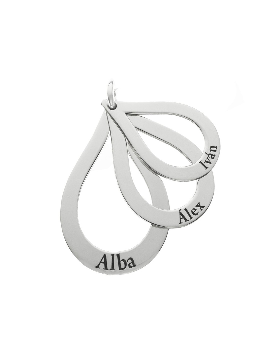 Collar triple gota con nombres personalizados fabricado en Plata de Ley