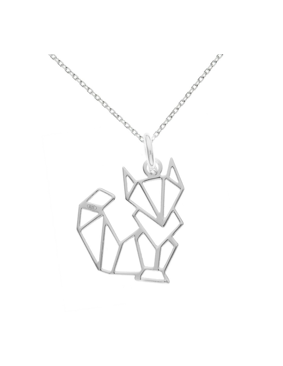 Collar estilo geométrico con zorro origami fabricado en Plata de Ley