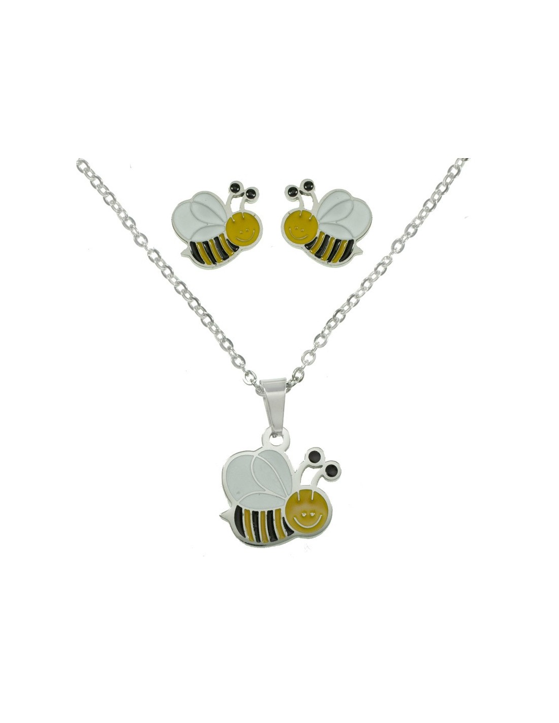 Conjunto pendientes y colgante diseño abeja esmaltada fabricado en acero