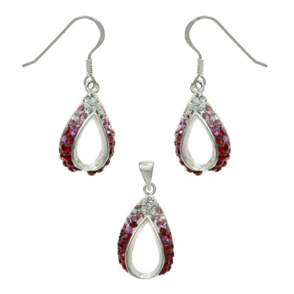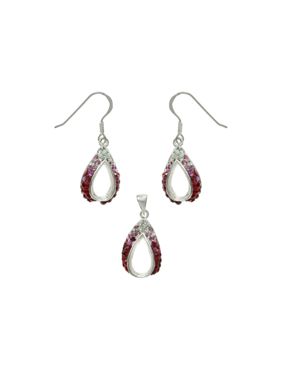 Conjunto bicolor zirconia color fucsia Plata de Ley