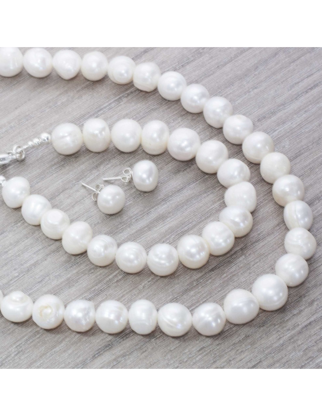 Conjunto collar, pulsera y pendientes perla de agua dulce en Plata De Ley 925