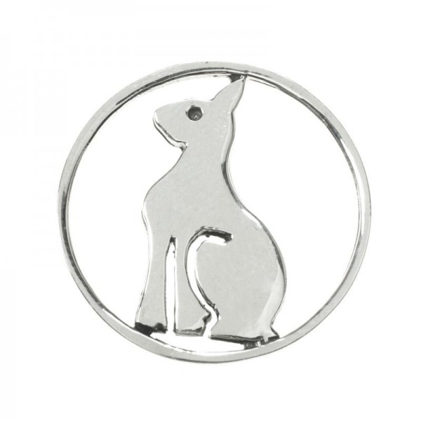 Entrepieza diseño gato sobre fondo circular calado, fabricado en Plata de Ley 925