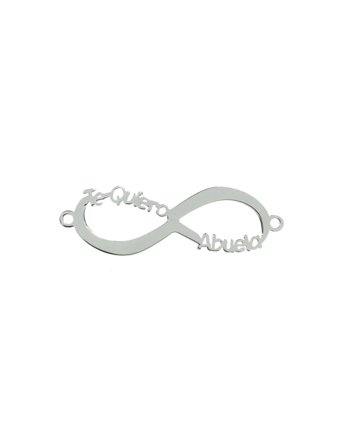 Entrepieza Infinito Te Quiero Abuela Plata de Ley 925. La entrepieza para pulsera tiene las arandelas en el eje horizontal y la entrepieza para colgante las tiene ligeramente más arriba.