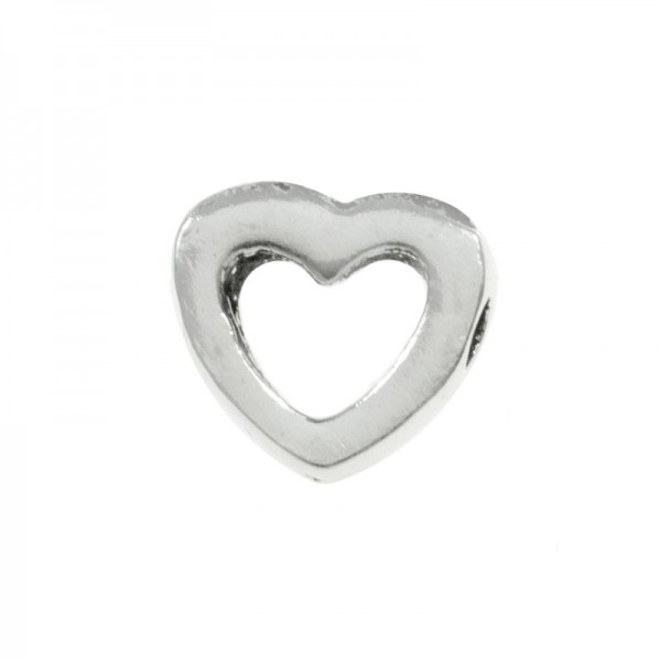 Entrepieza mini corazón calado con orificio trasversal de 1 mm fabricado en Plata de Ley 925