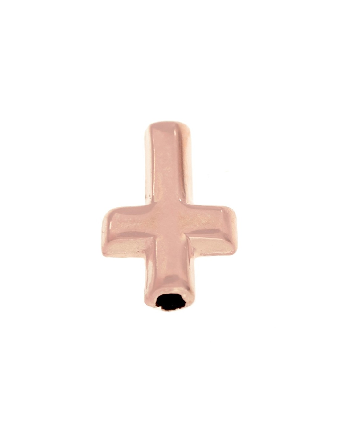 Entrepieza con diseño de cruz tamaño mini fabricado en Plata de Ley 925 y bañado en oro rosa o amarilllo.