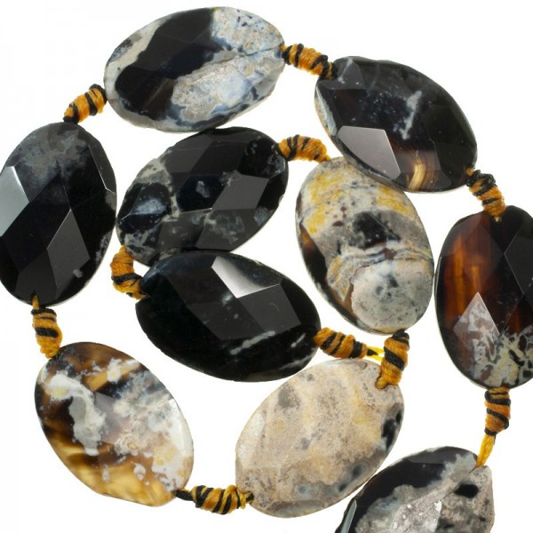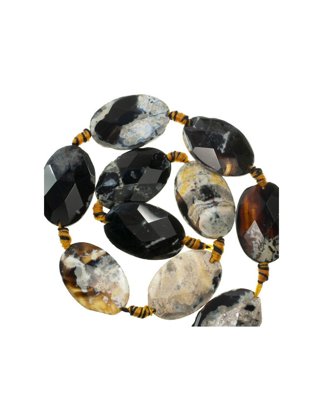 Tira de 40 cm de jade imperial oval facetado de 30 x 20 mm con hilo amarillo.